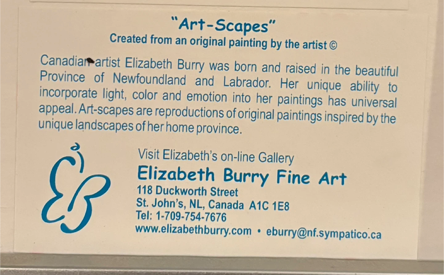 Selling a framed print by Canadian artist Elizabeth Burry, titled "Warm Welcome"! It's a lovely depiction of houses by the water, perfect for adding a touch of Newfoundland charm to your home. The frame is silver-toned and in great condition.