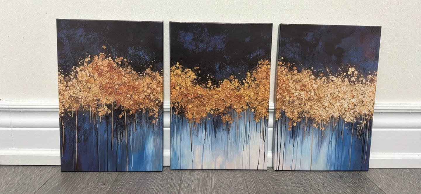 Set of 3 Abstract Wall Art - Blue & Gold
