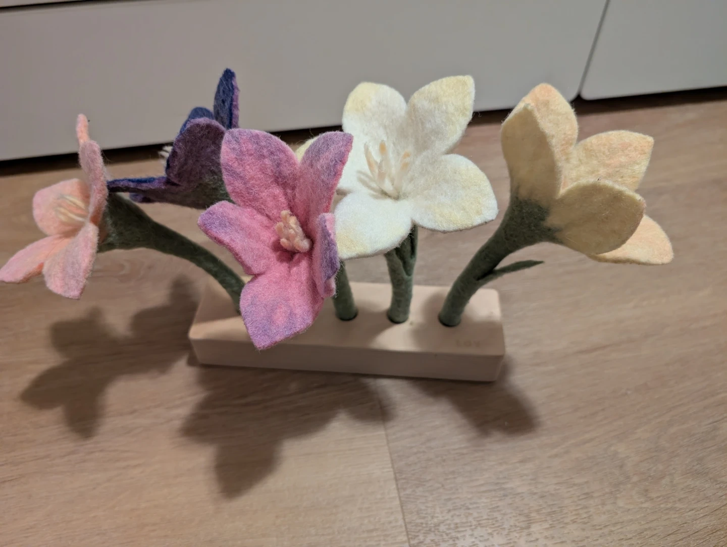 Selling a cute felt flower arrangement! It features a variety of colours and would look great as a table centerpiece or decor for any room