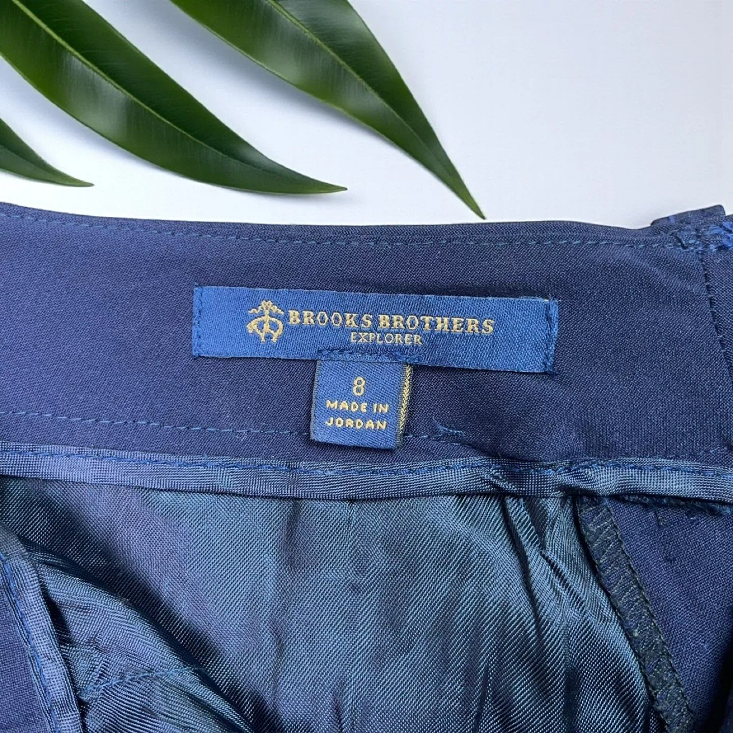 These classic navy trouser pants from Brooks Brothers Explorer Collection combine iconic tailoring and their innovative blend of wool and engineered fibers, resulting in high-tech fabric that is lightweight, wrinkle resistant and water repellent, perfect for work or travel.
