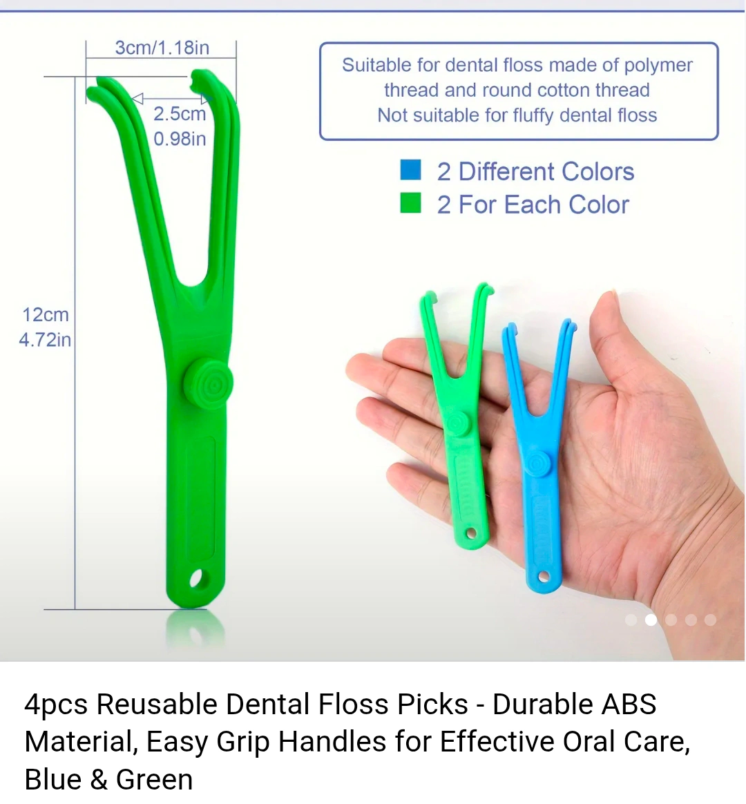 247Get these 3pcs reusable dental floss picks in blue and green! Made with durable ABS material and easy grip handles for effective oral care. Suitable for dental floss made of polymer thread and round cotton thread. Dimensions are 3cm/1.18in at the top and 12cm/4.72in in length