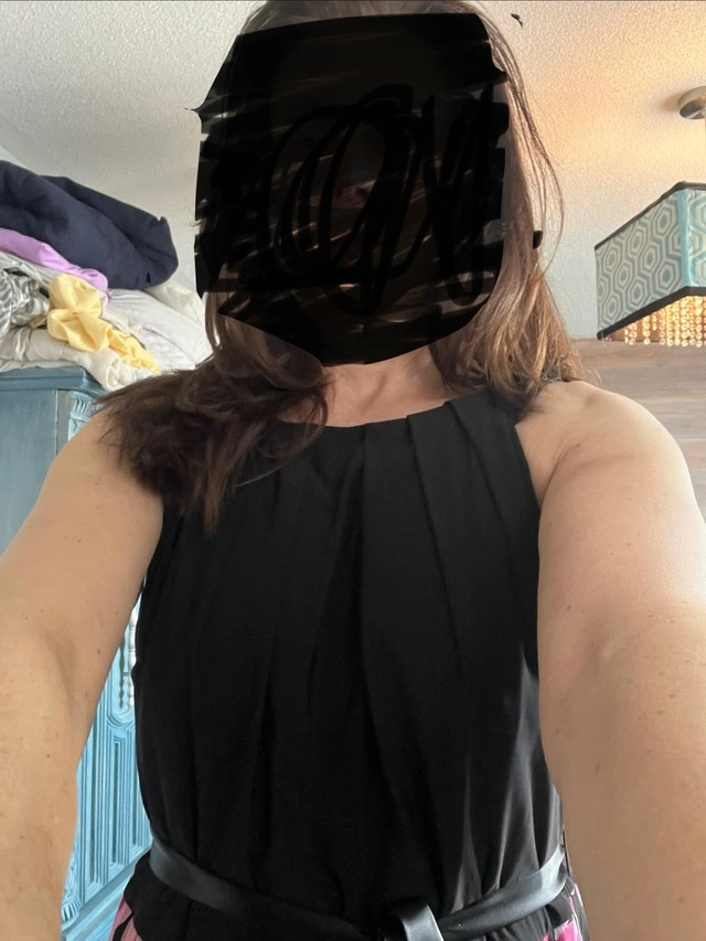 Size 16, worn once, purchased from Laura Plus boutique. Beautiful fancy black chiffon-like top with floral bottom and a lovely sash. Beautiful for summer, very roomy and comfortable. Can be worn formally or semi-formally.
