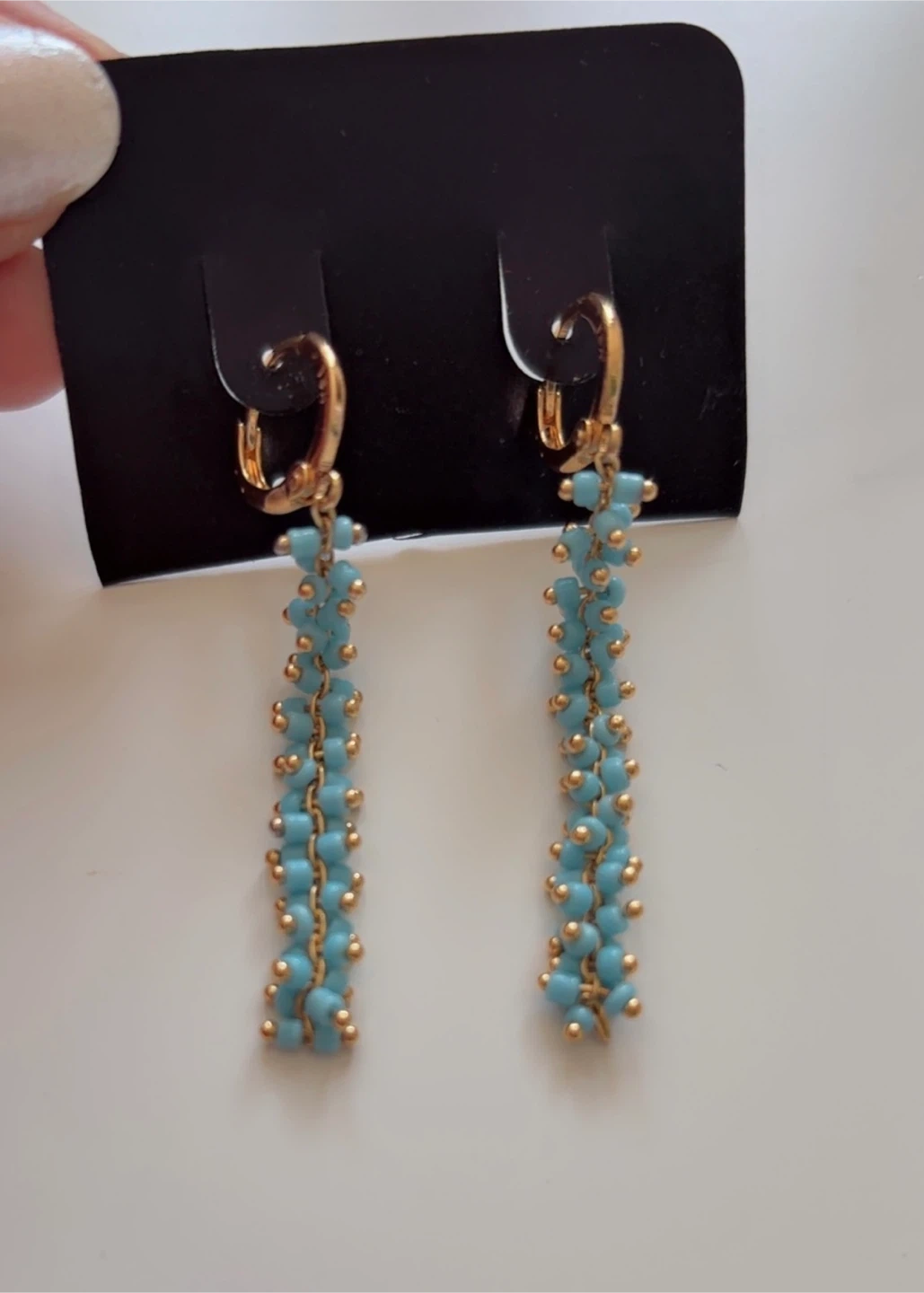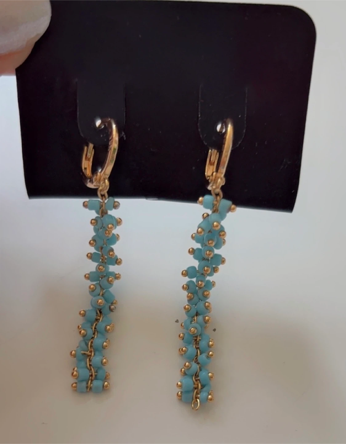 Beautiful Beaded Dangle Earrings - Turquoise & Gold