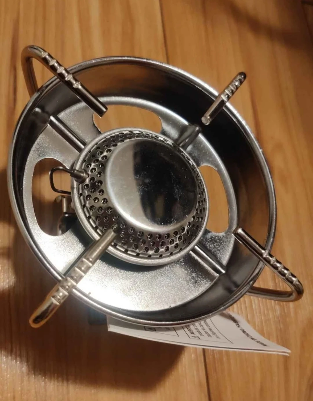 This is a Woods Backwoods Trek portable camping stove. It's compact and lightweight for easy carrying. Made with durable metal materials.