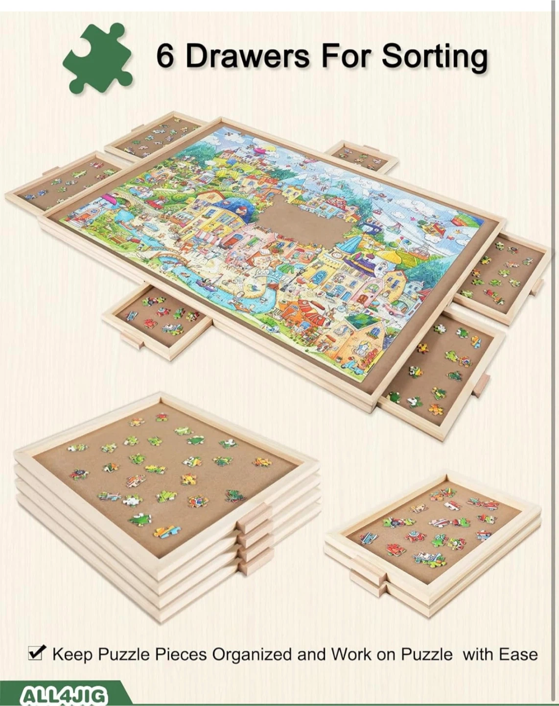 ALL4JIG Wooden Jigsaw Puzzle Board with 6 Drawers RP15