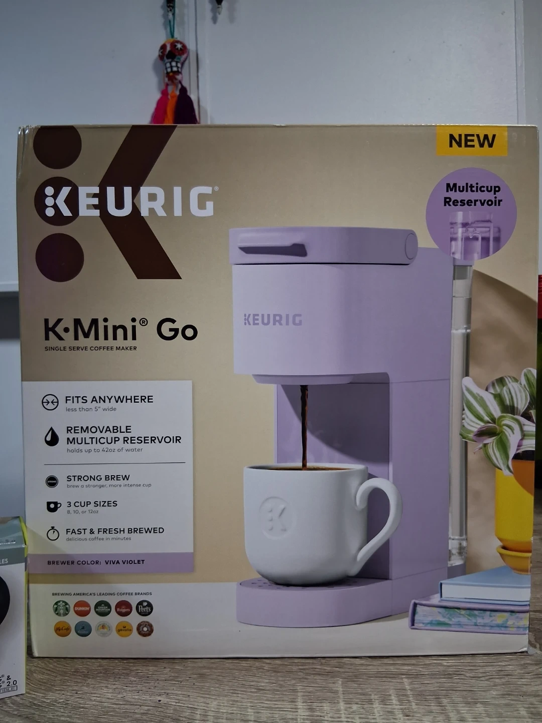New in unopened box! This Keurig K-Mini Go single-serve coffee maker comes in a compact design, fitting anywhere. It features a removable multicup reservoir that holds up to a 12oz water. This brewer offers a strong brew option and 3 cup sizes for flexibility.