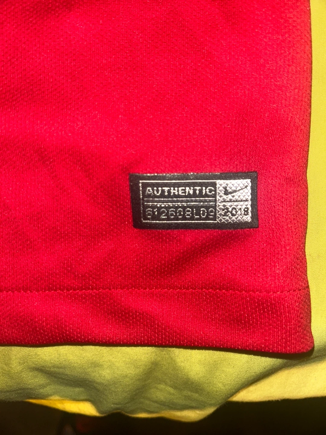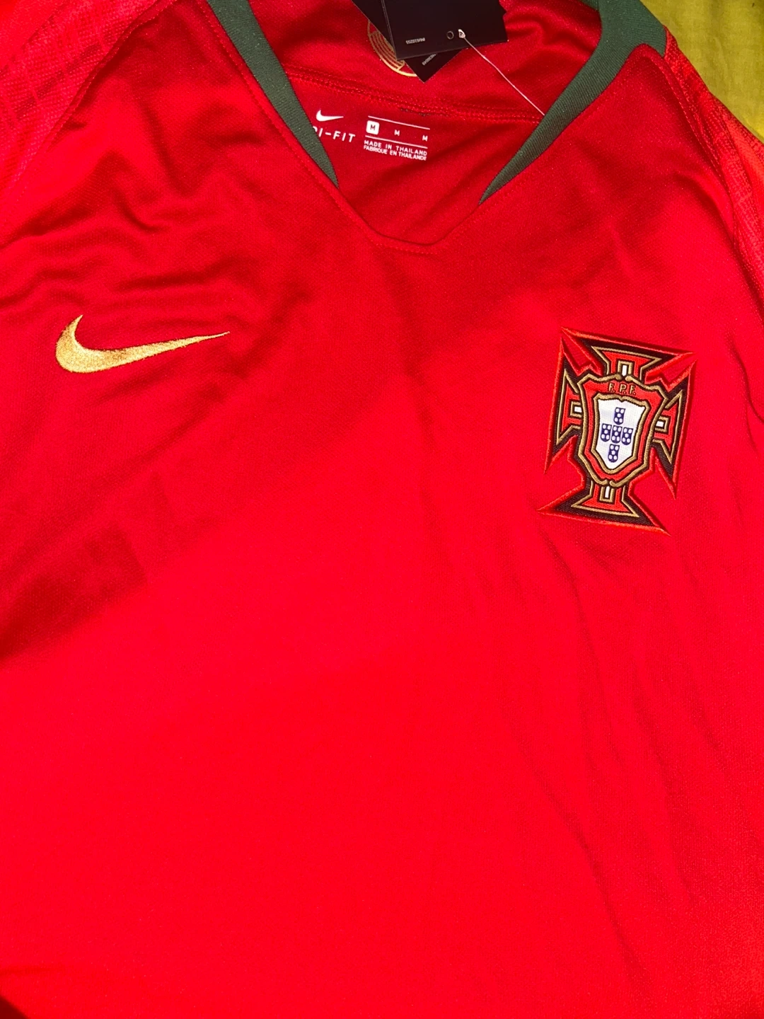 Red Nike Portugal soccer jersey with FIFA World Cup Russia 2018 patch. It's a size medium. Made with Dri-FIT material.
