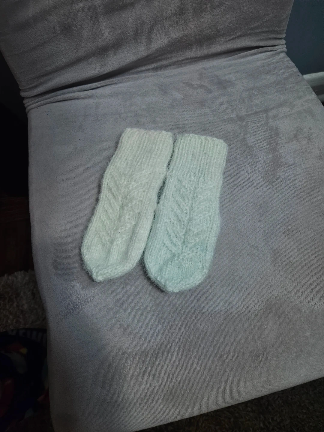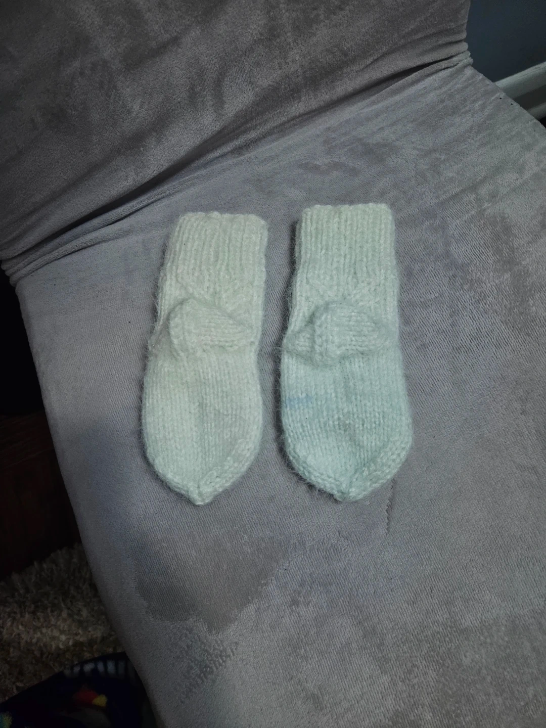 Here are some adorable hand-knitted baby booties! They are in great condition and ready to keep a little one's feet warm and cozy. Perfect for newborns or infants, these booties are soft and gentle on delicate skin. They're a charming addition to any baby's wardrobe