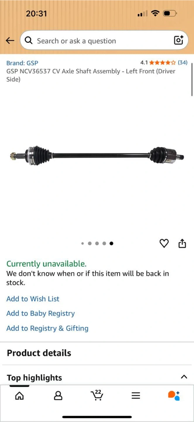 ππ₯ GSP NCV36537 CV Axle Shaft β Front Left for Honda Accord 1998β2002 β Open Box π₯π