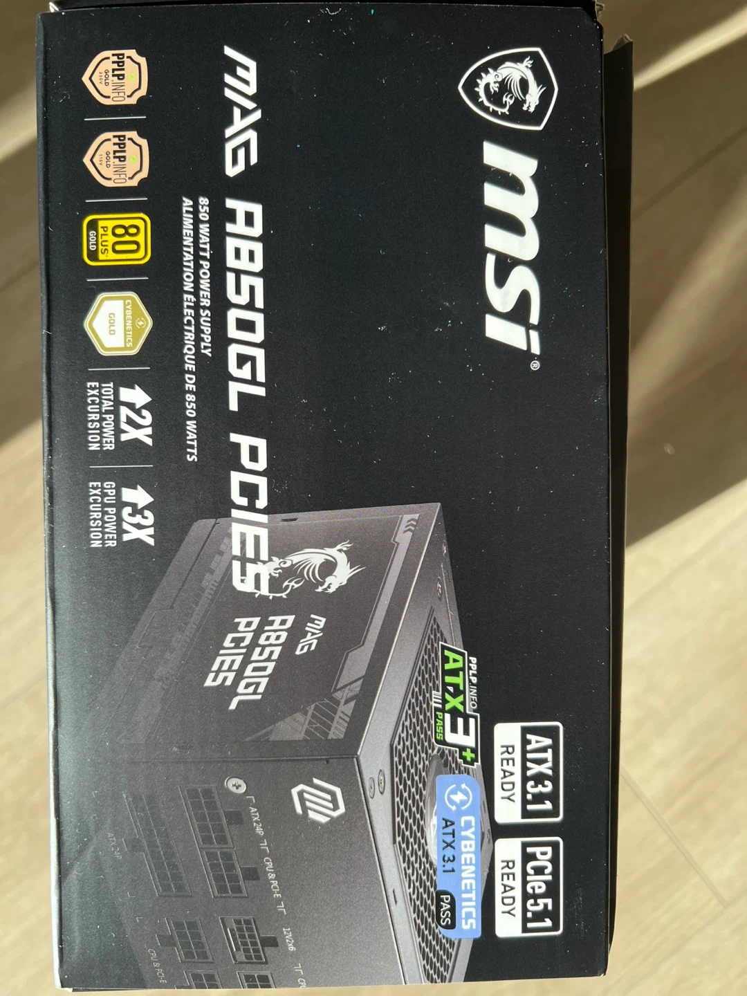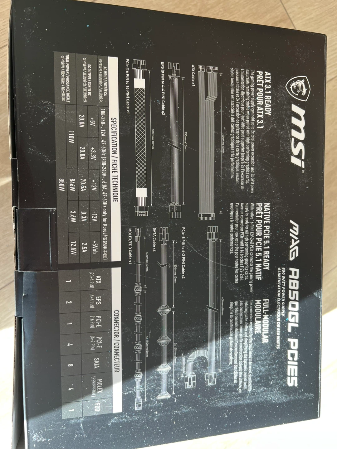 This is an MSI MAG A850GL PCIE5 850 Watt power supply. It's ATX 3.1 ready and PCIe 5.1 ready. Includes all original components and packaging.