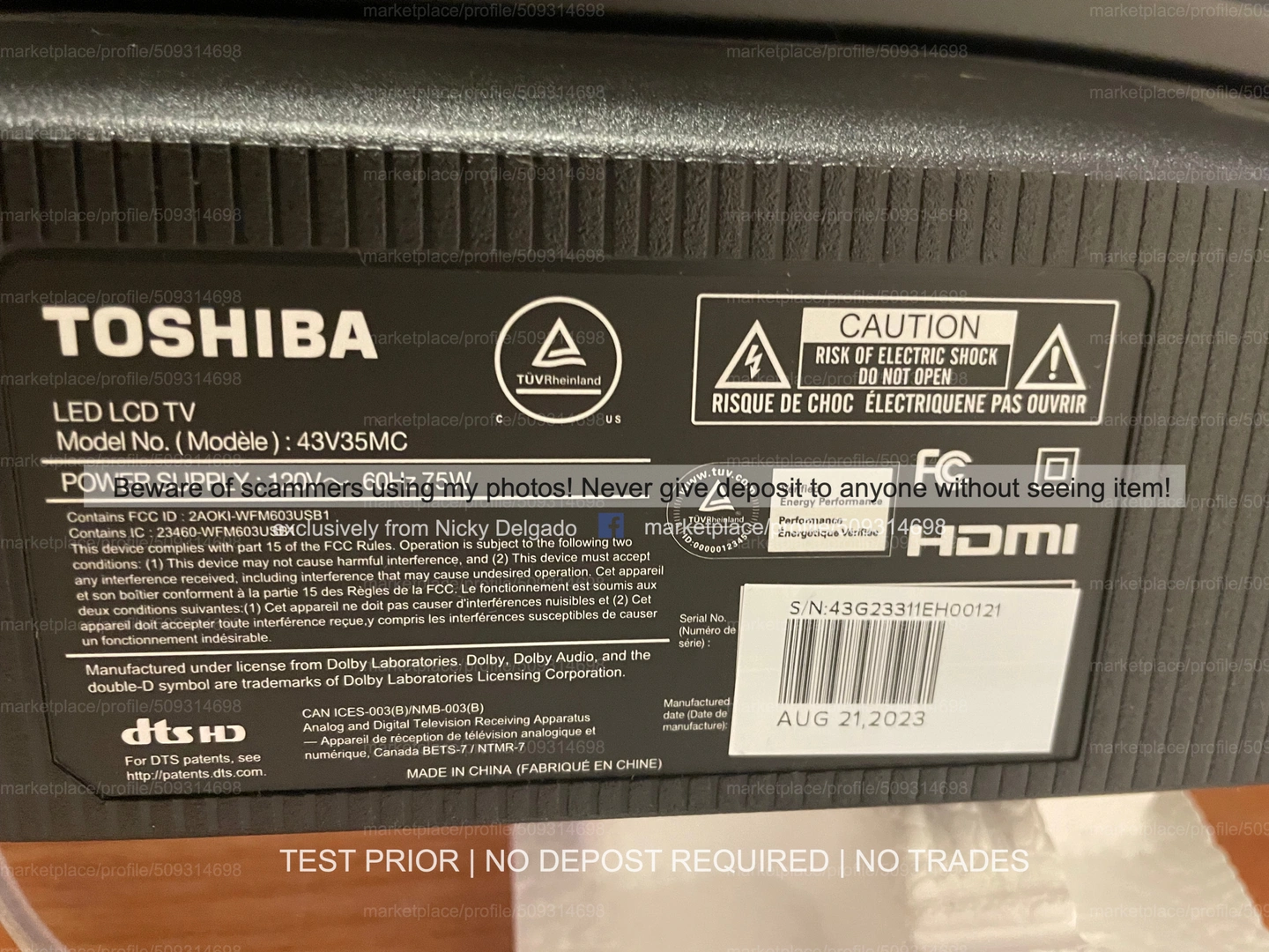 Selling several new and like new new condition state Toshiba 43" 43V35MC 1080p HD LED Vidaa Smart TV. Perfect working order! 2023/24 edition. This is the newest model! Comes with Original Remote, legs/stand, power supply, box. Used for staging so barely on. ULTRA THIN and Amazing build quality!