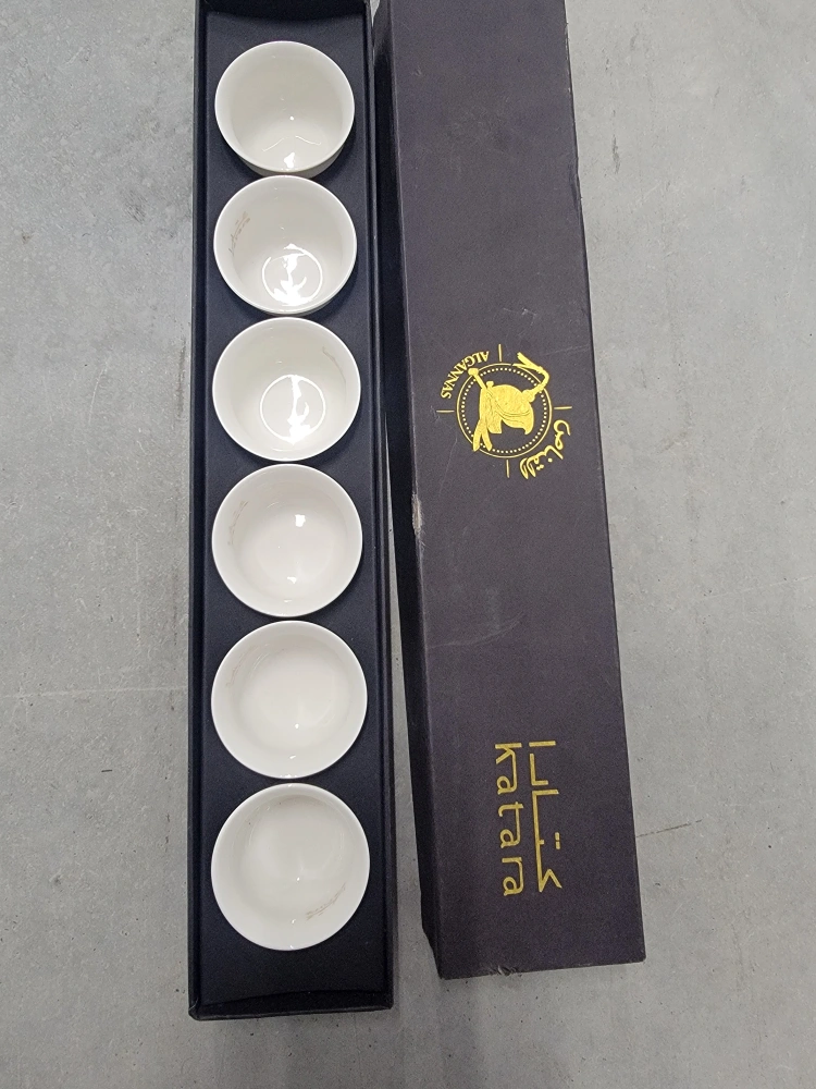 Selling a set of Katara Al Gannas coffee cups! They are in excellent condition and come in their original box. Perfect for enjoying traditional coffee with friends and family!