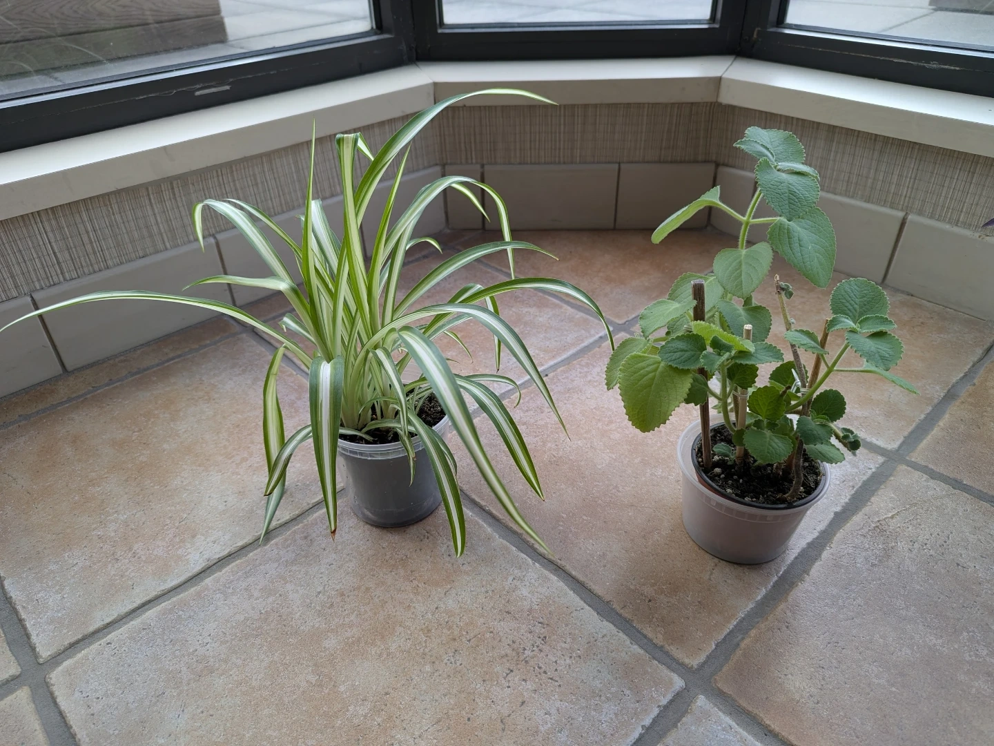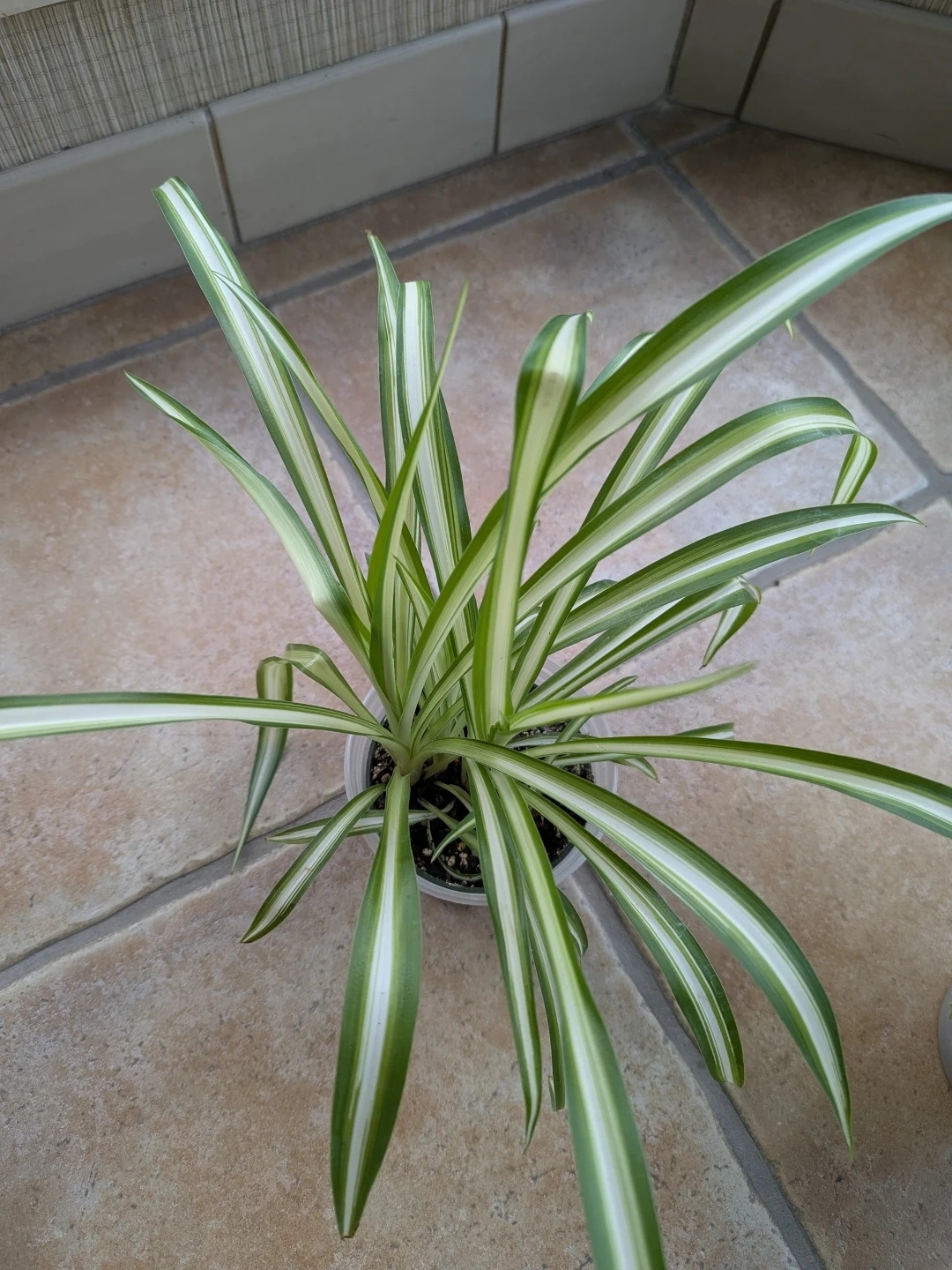 π± A lovely spider plant with variegated leaves, it helps purifying the air, about 13 inches tall.