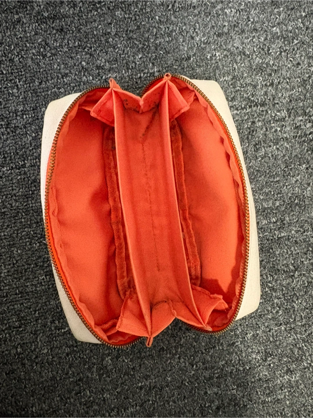 Selling a cute pencil case that was bought at indigo It's beige on the outside with a vibrant orange interior. Perfect for carrying your essentials in style!