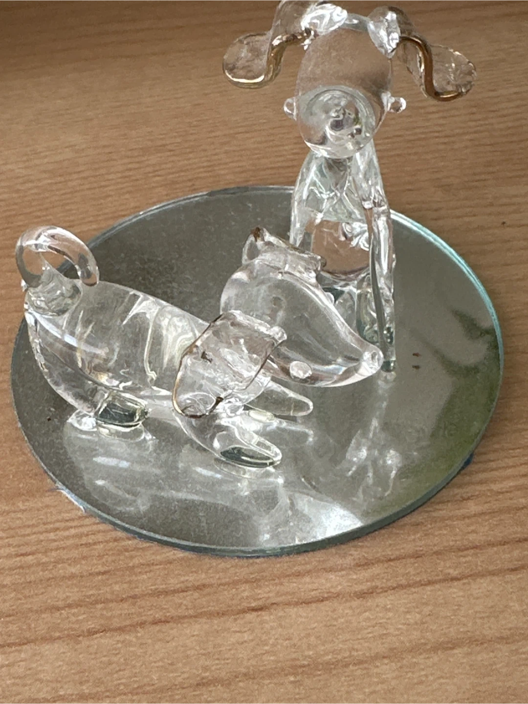 Glass Dachshund and Dog Figurine on Mirror Base