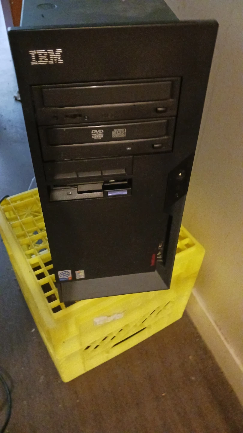 This is an IBM desktop computer tower and a Samsung SyncMaster 151v monitor. Both are functional units. The monitor has a 15-inch screen size. They have been in storage and are aged but not overly used. Exceptional shape!