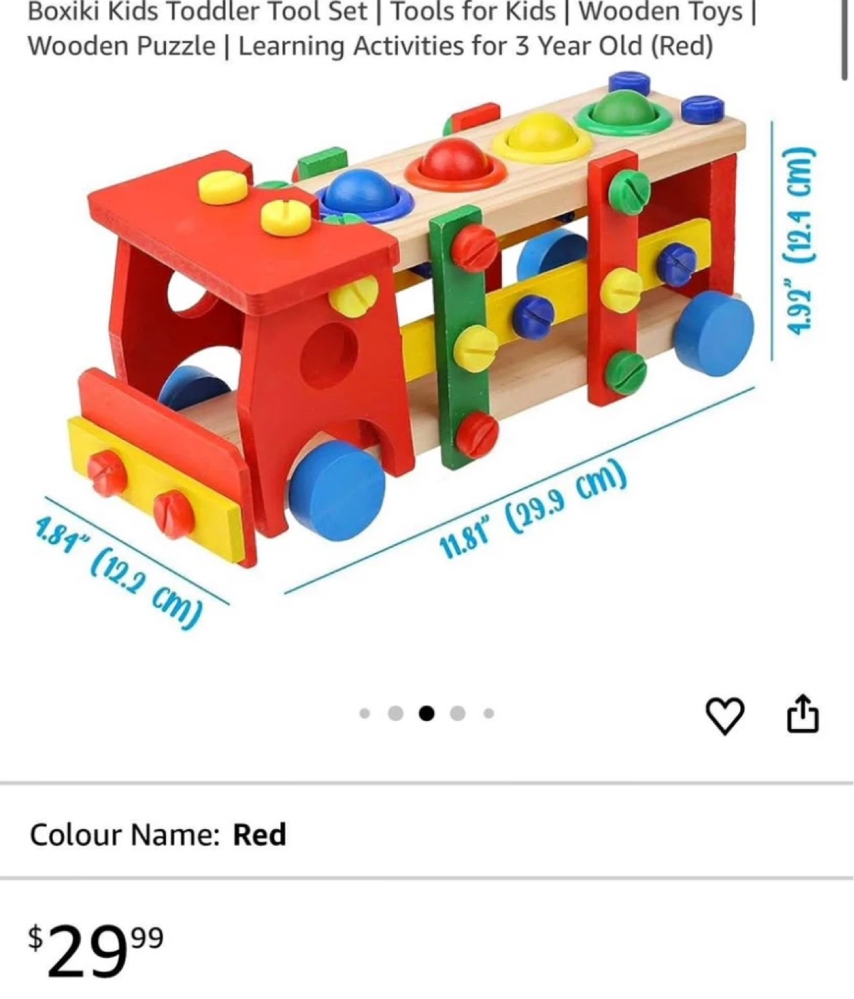 This Boxiki Kids activity bus is a red wooden toy set with 18 truck building blocks and 30 screws. It includes a hammer and a screwdriver for building fun. It's a great way for little ones to develop fine motor skills!