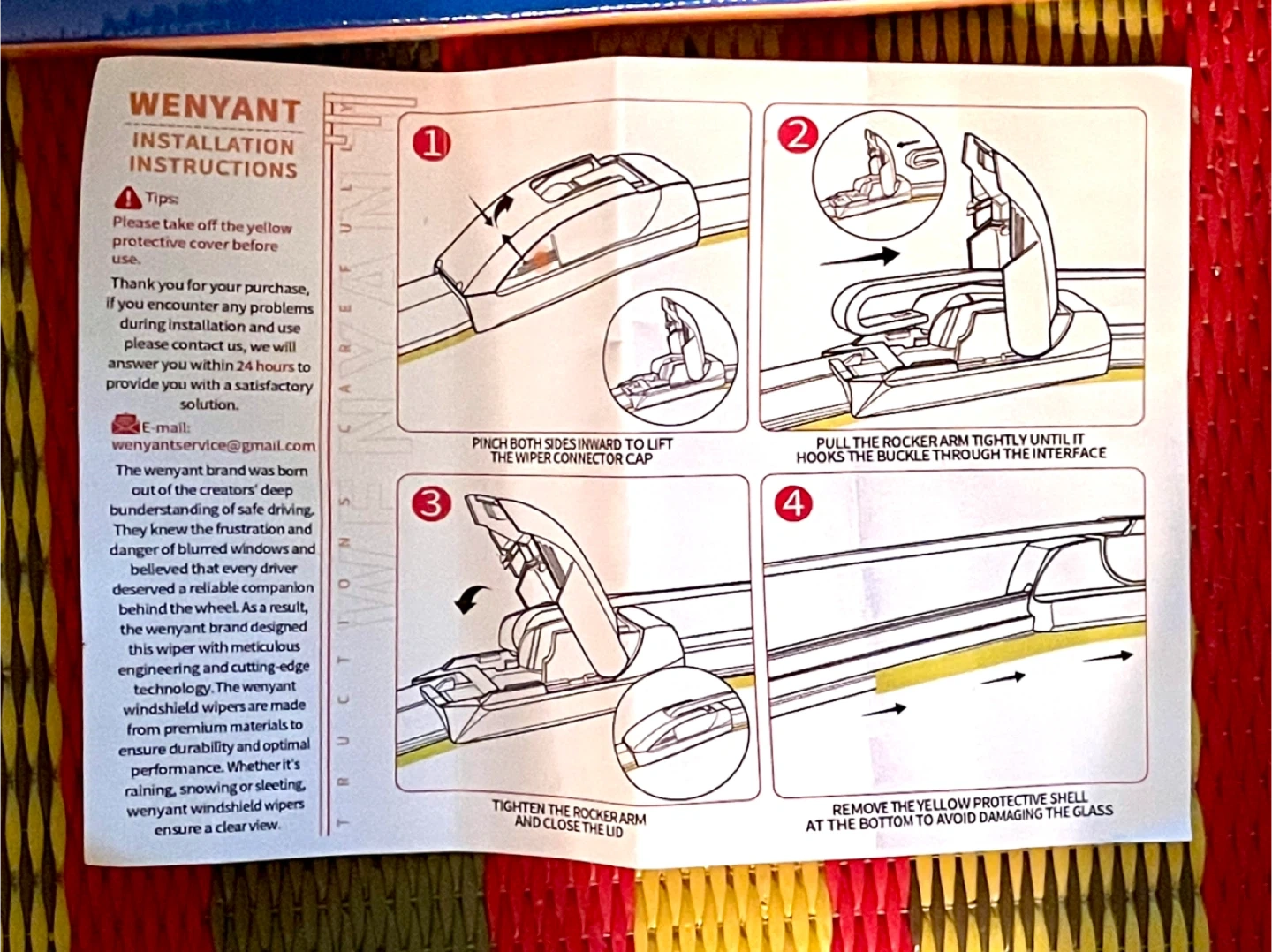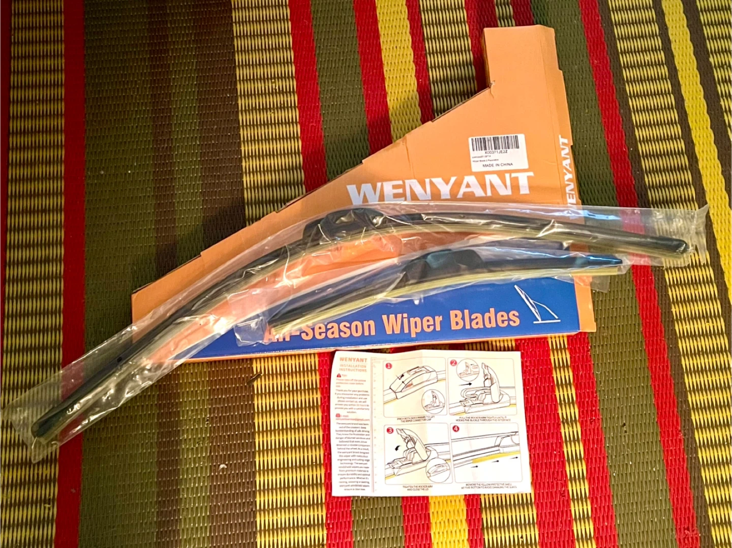 These brand new Wenyant windshield wiper blades are crafted with imported German steel and Malaysian natural rubber. They're designed for durability and optimal performance in all seasons. Blades ensure a clear view in rain, snow, or sleeting conditions. I ordered these for my Honda Fit but they did not fit. I missed the return date on Amazon so this is your big chance to get these cheap without tax. Please view the photos and read the description to determine if these will fit your car as sales are final.