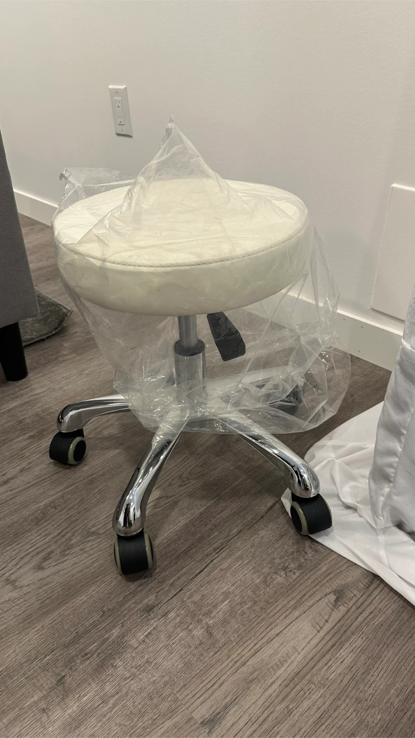 Selling a gently used (bigger square one )small one is brand new adjustable rolling swivel stool. It's in great condition and perfect for a variety of uses around the house or in a studio. The stool features a comfortable white seat and a sturdy chrome base with smooth-rolling casters.