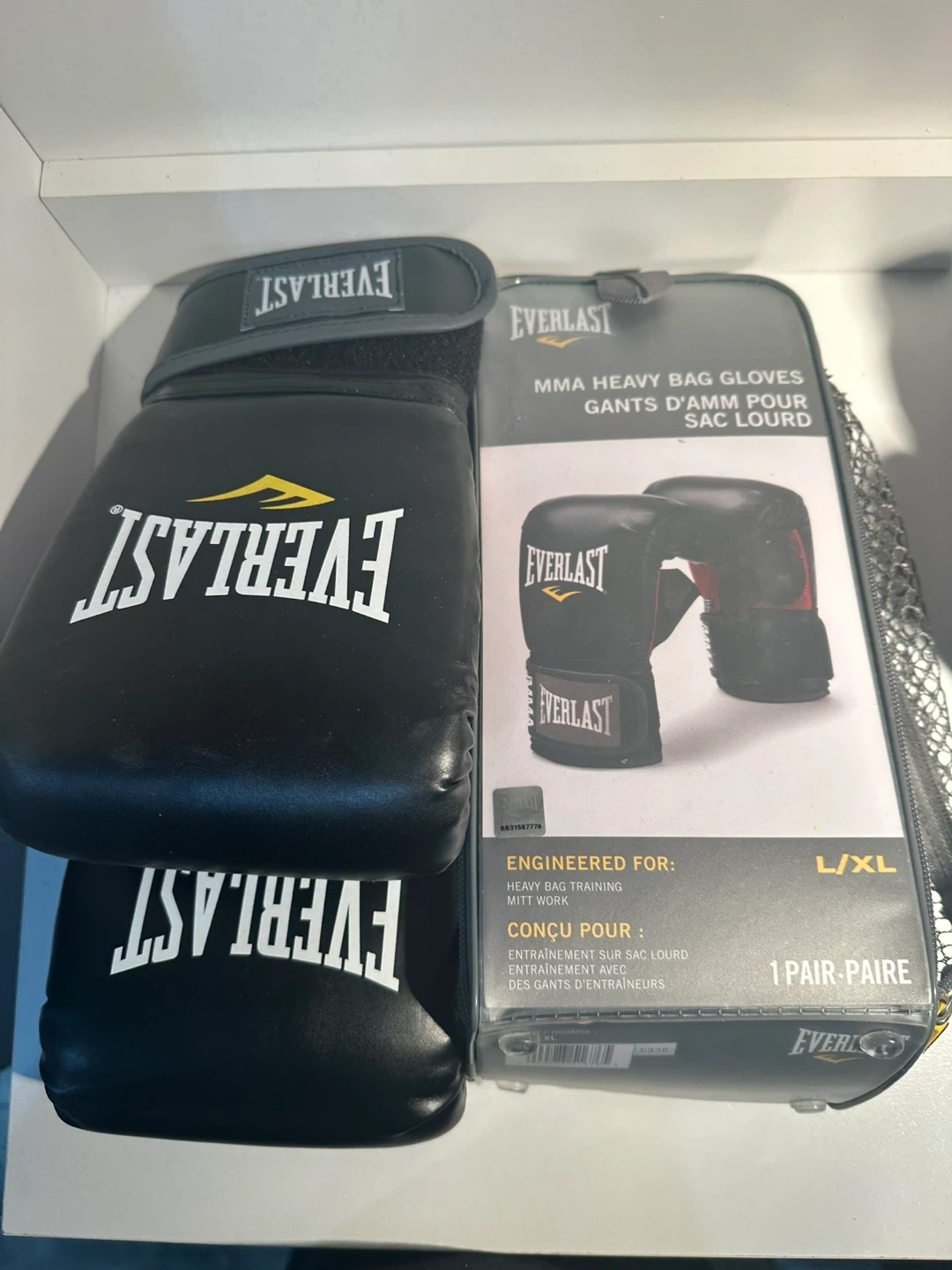 Everlast MMA heavy bag gloves for training and mitt work. These gloves are size L/XL and come as one pair. They're designed for heavy bag training.