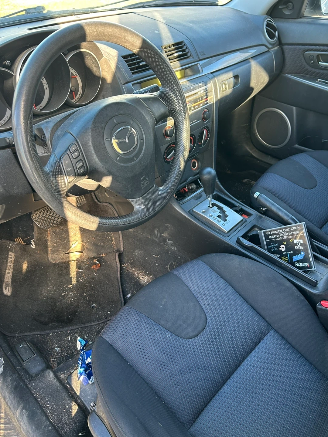 Silver Mazda 3 hatchback. Odometer reads 154,390 km. This car's been reliable for daily commutes. It's a practical choice for getting around town.