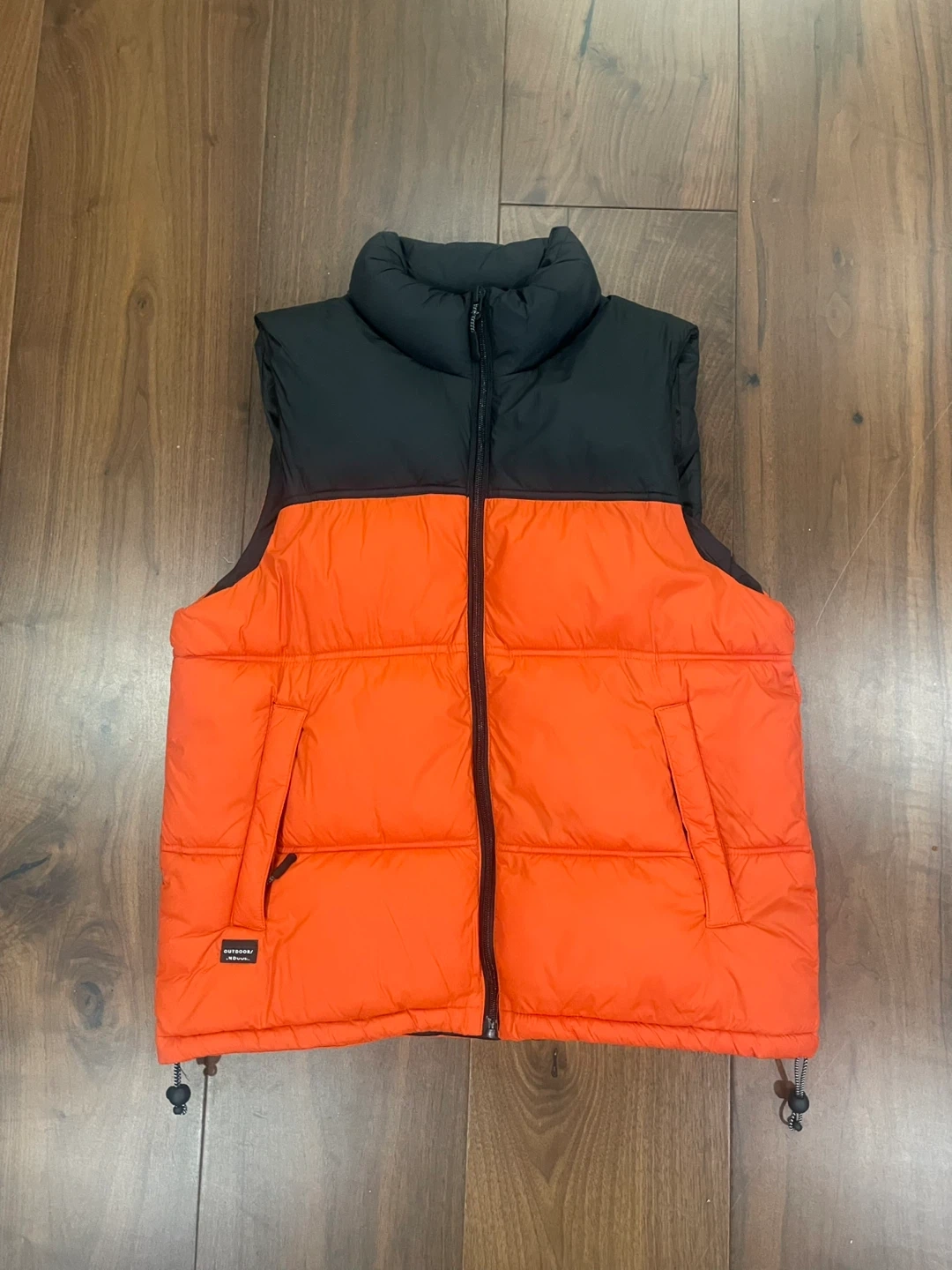 Selling my Zara black and orange vest. It was gifted to me but it isn’t my style. Wore only a handful of times and is in very good condition. All the zippers work and there is no major damage to it. It contains 2 outside zipper pockets and 1 inside zipper pocket.