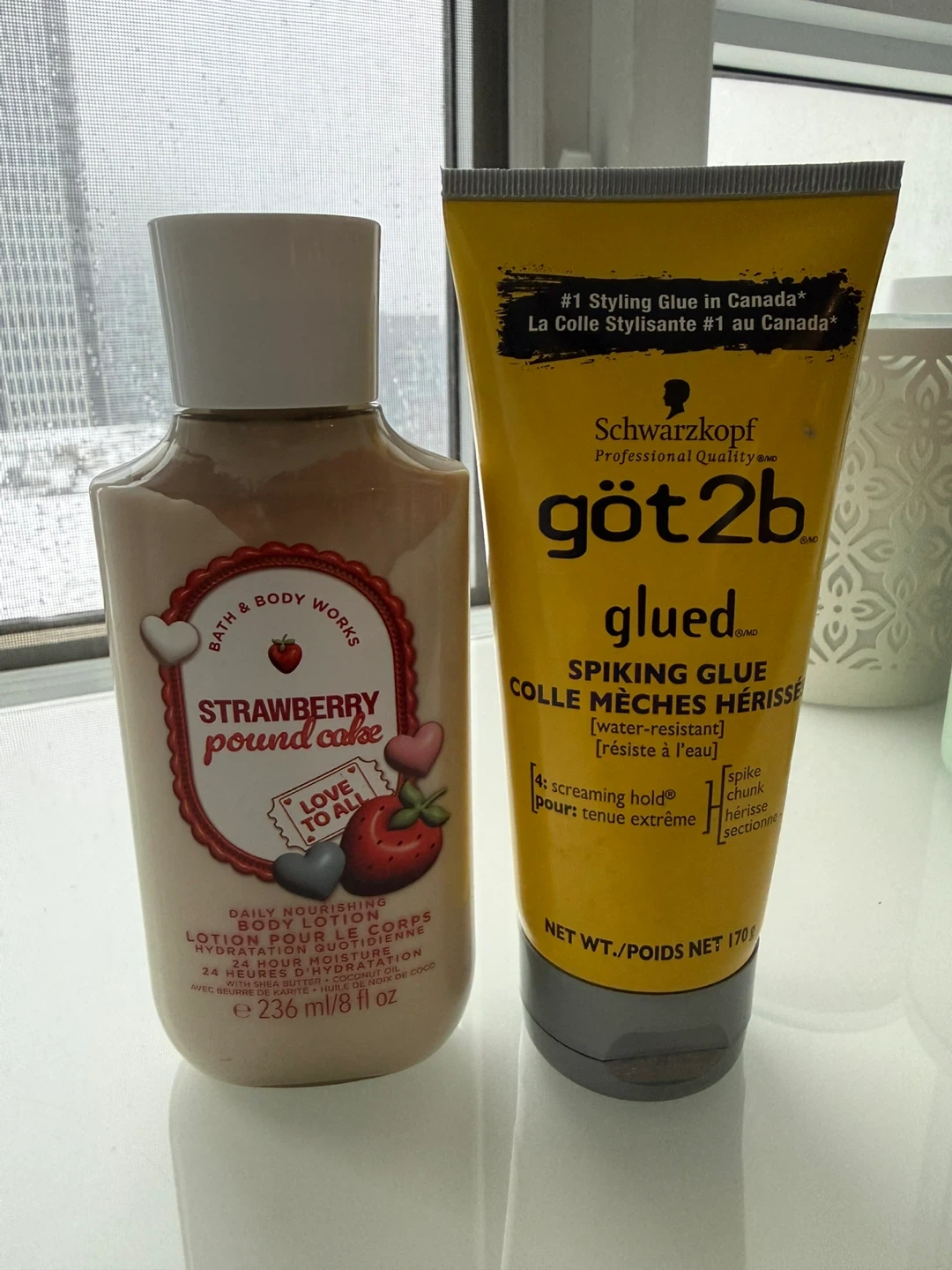 Selling a Bath & Body Works Strawberry Pound Cake Daily Nourishing Body Lotion (236 ml/8 fl oz) and a Schwarzkopf Got2b Glued Spiking Glue (170g)