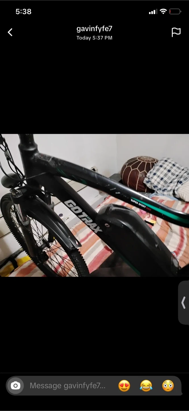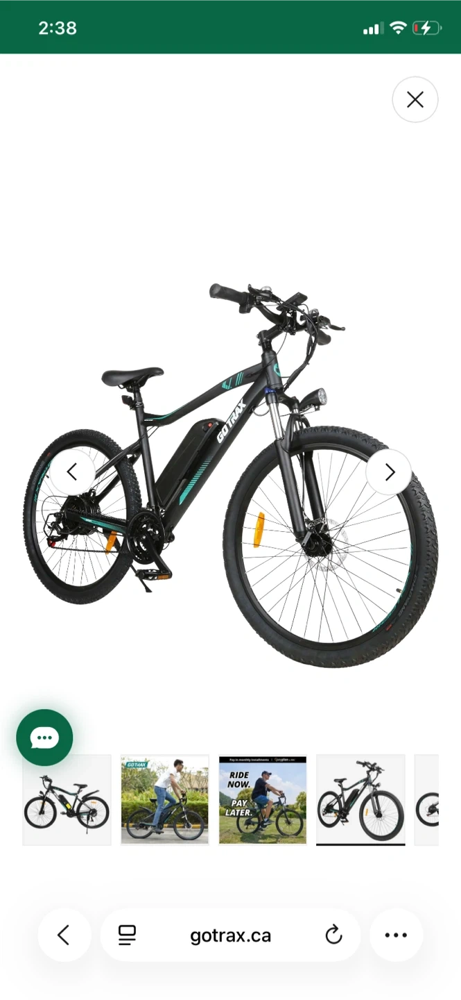 GoTrax electric bike with a long-range battery. It's a black frame bike with teal accents. This e-bike is great for getting around town!