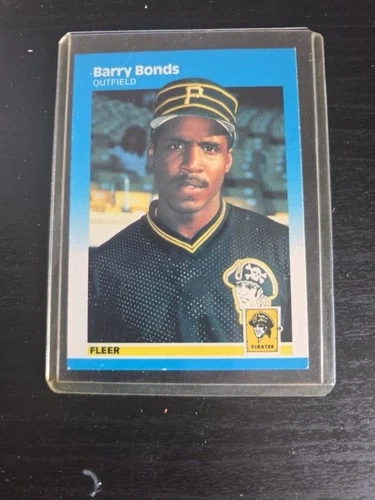 This is an original 1987 Fleer Barry Bonds rookie card, featuring Bonds during his early years with the Pittsburgh Pirates. It's widely recognized as Barry Bonds’ true rookie card and a key piece for any modern baseball card collection. The card is raw/ungraded and stored in a protective holder. Please review all photos carefully to judge centering, corners, edges, and surface condition. Year: 1987, Brand: Fleer, Card Number: #604, Player: Barry Bonds, Team: Pittsburgh Pirates, Rookie Card: Yes (RC), Condition: Raw / Ungraded. A must-have rookie card of one of baseball’s most iconic sluggers. Great for collectors of rookie cards, Hall of Fame–caliber players, or 1980s baseball.