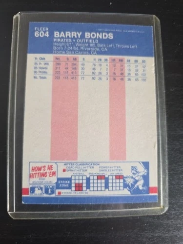 1987 Fleer Barry Bonds Rookie Card #604 Pirates RC