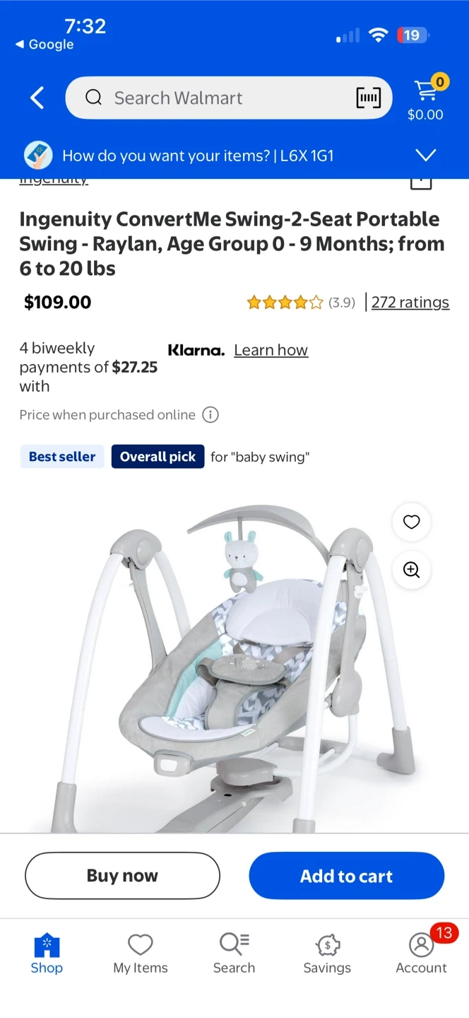 Ingenuity ConvertMe Swing-2-Seat portable swing. Suitable for babies from 6 to 20 lbs. Features a 2-seat design with adjustable settings. It's a great option for soothing your little one!