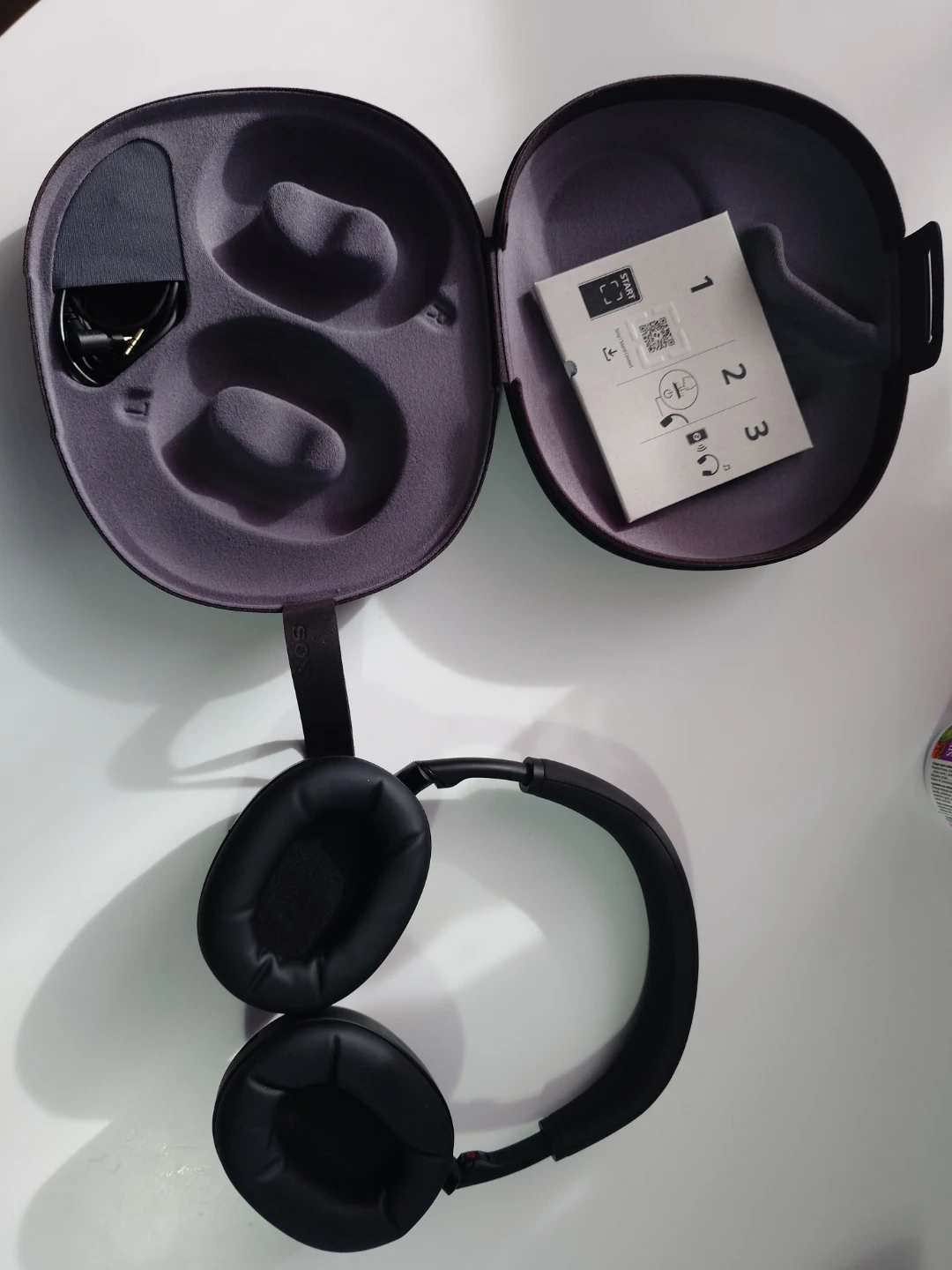 Black Sony WH-1000XM6 wireless noise-cancelling headphones. They come with the original charging case and included accessories. These headphones offer excellent sound quality and comfort.