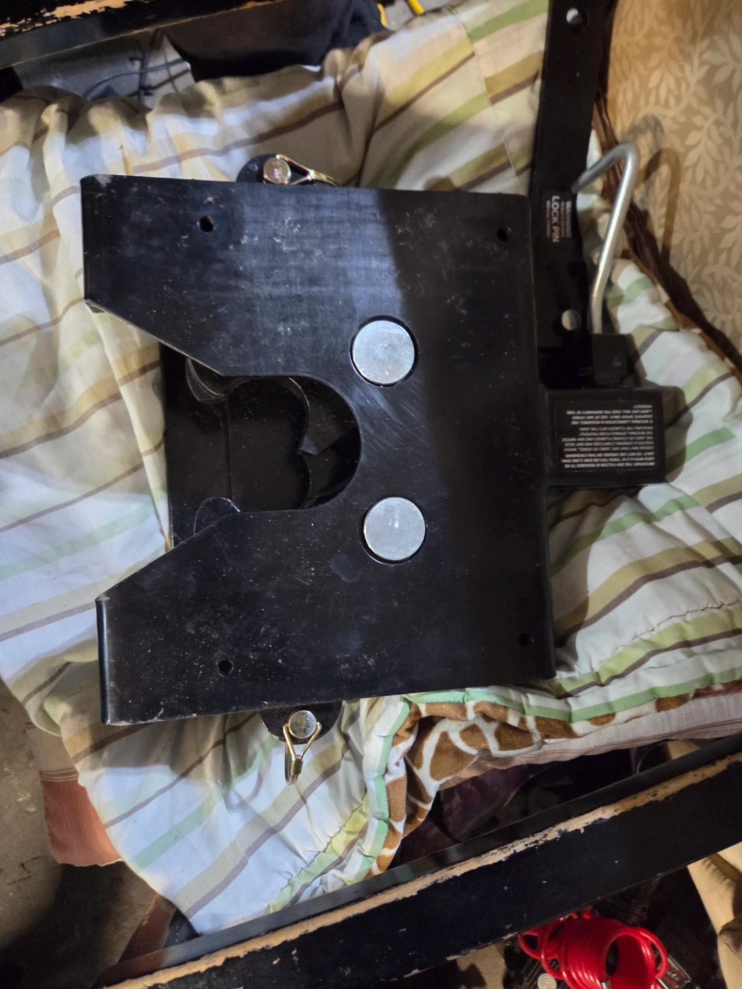 This is a Falcon CB fifth wheel trailer hitch from DSP Hitches. It's made in Edmonton, Alberta, Canada. The hitch is designed for towing trailers, with different weight capacities depending on the mounting method. It's SAE J2638 Certified.