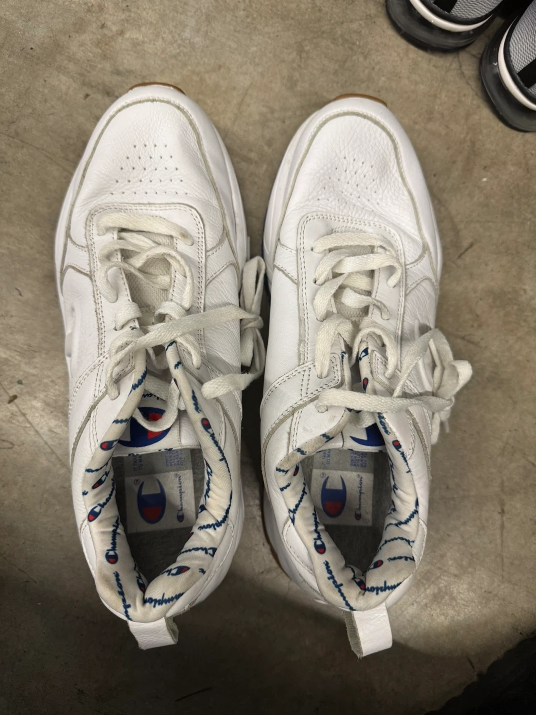 Selling a pair of Champion sneakers in white. They are in great shape and ready for a new owner. Size is 10!