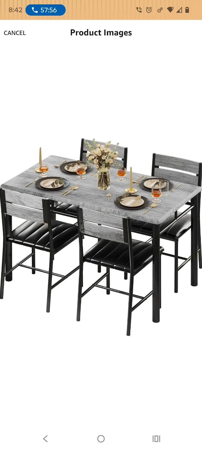 This is a 4-piece dining table set featuring a wood kitchen table with upholstered chairs. It's designed for kitchen rooms and small spaces. The set includes one table and four chairs.