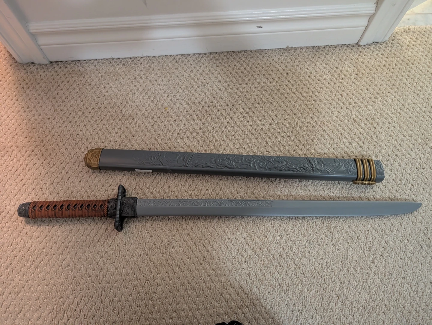 Selling a toy ninja sword that comes with its sheath. It's in good condition and ready for a new adventure!