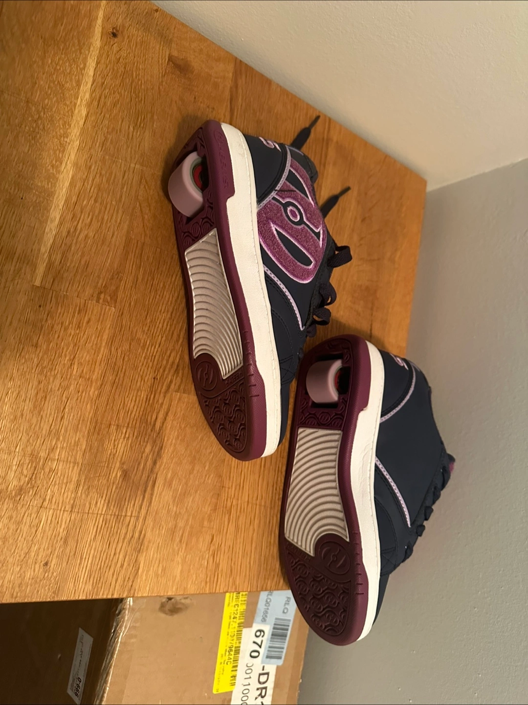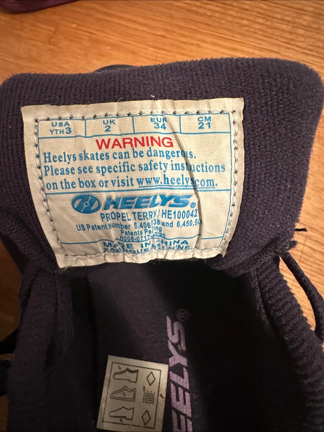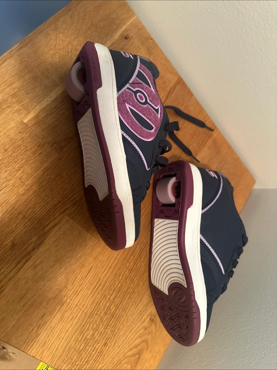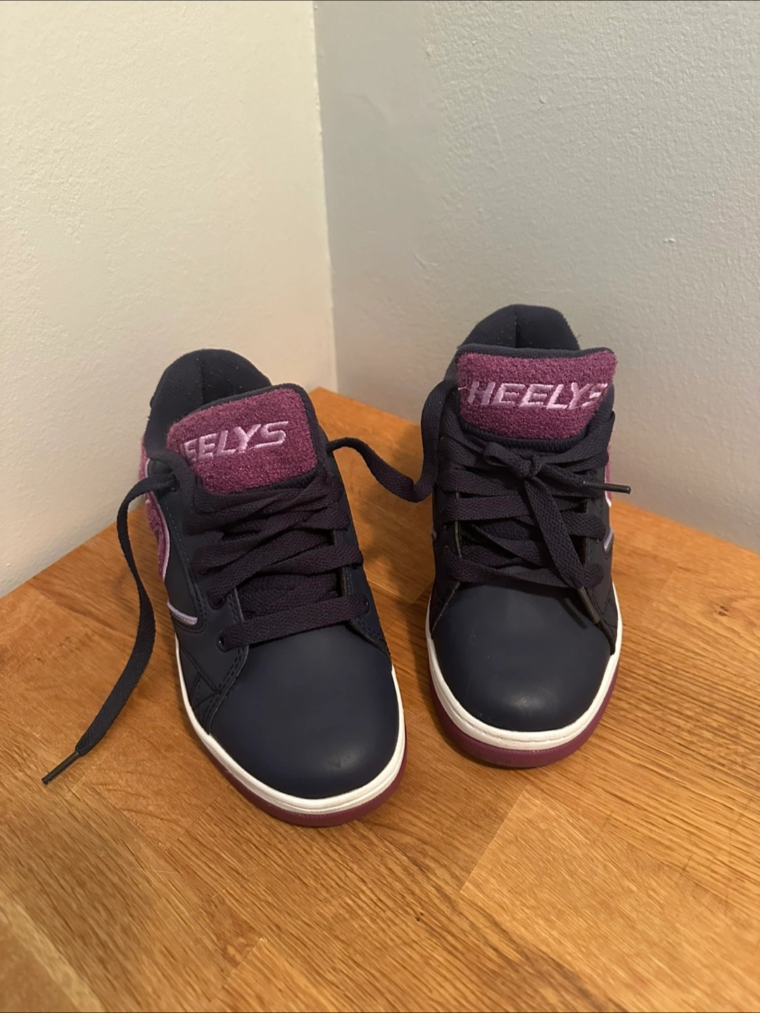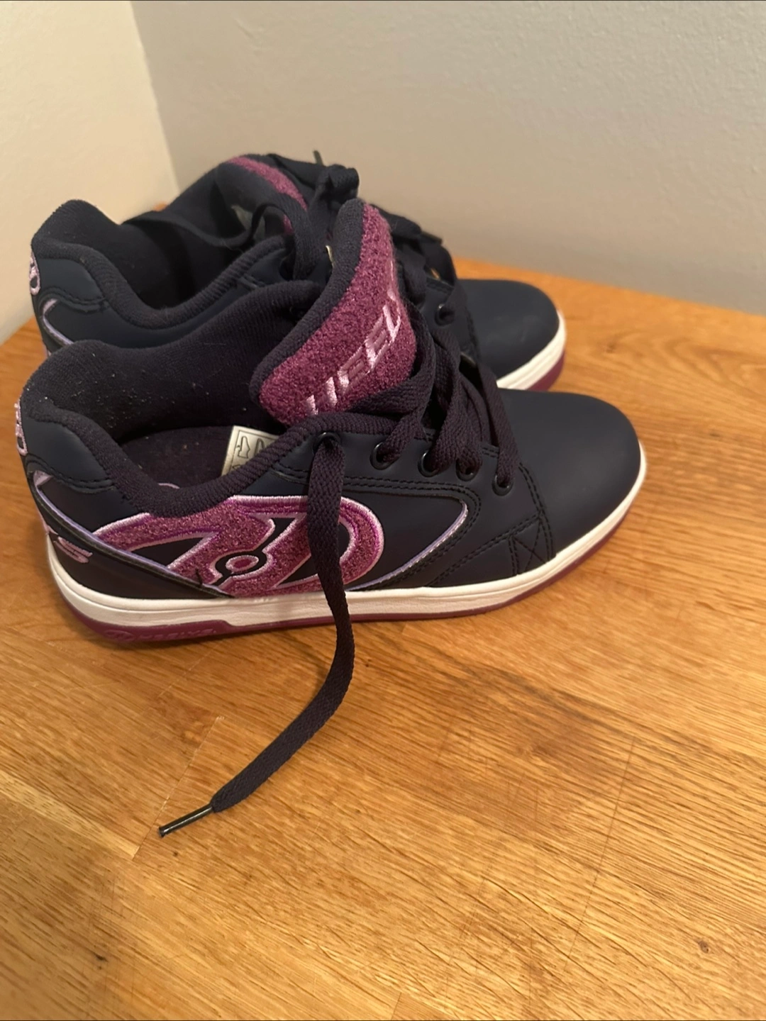Girls' Heelys roller shoes. Navy blue with purple accents. Size Youth 3. Wheels are retractable. Great condition.
