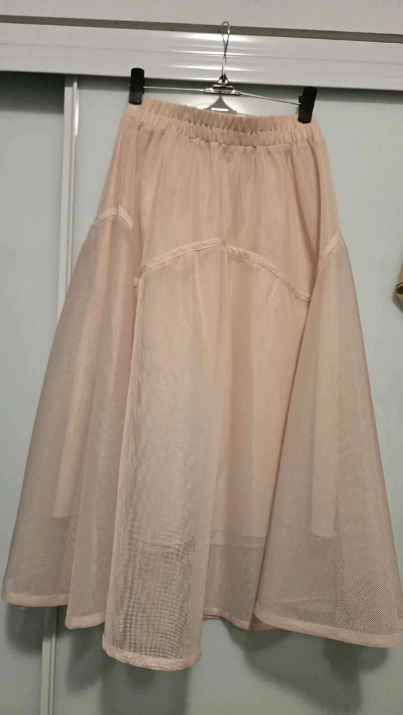 A light pink mesh petticoat skirt is available. It features an elastic waistband for a comfortable fit. This skirt adds volume and a flowy look under dresses or skirts.