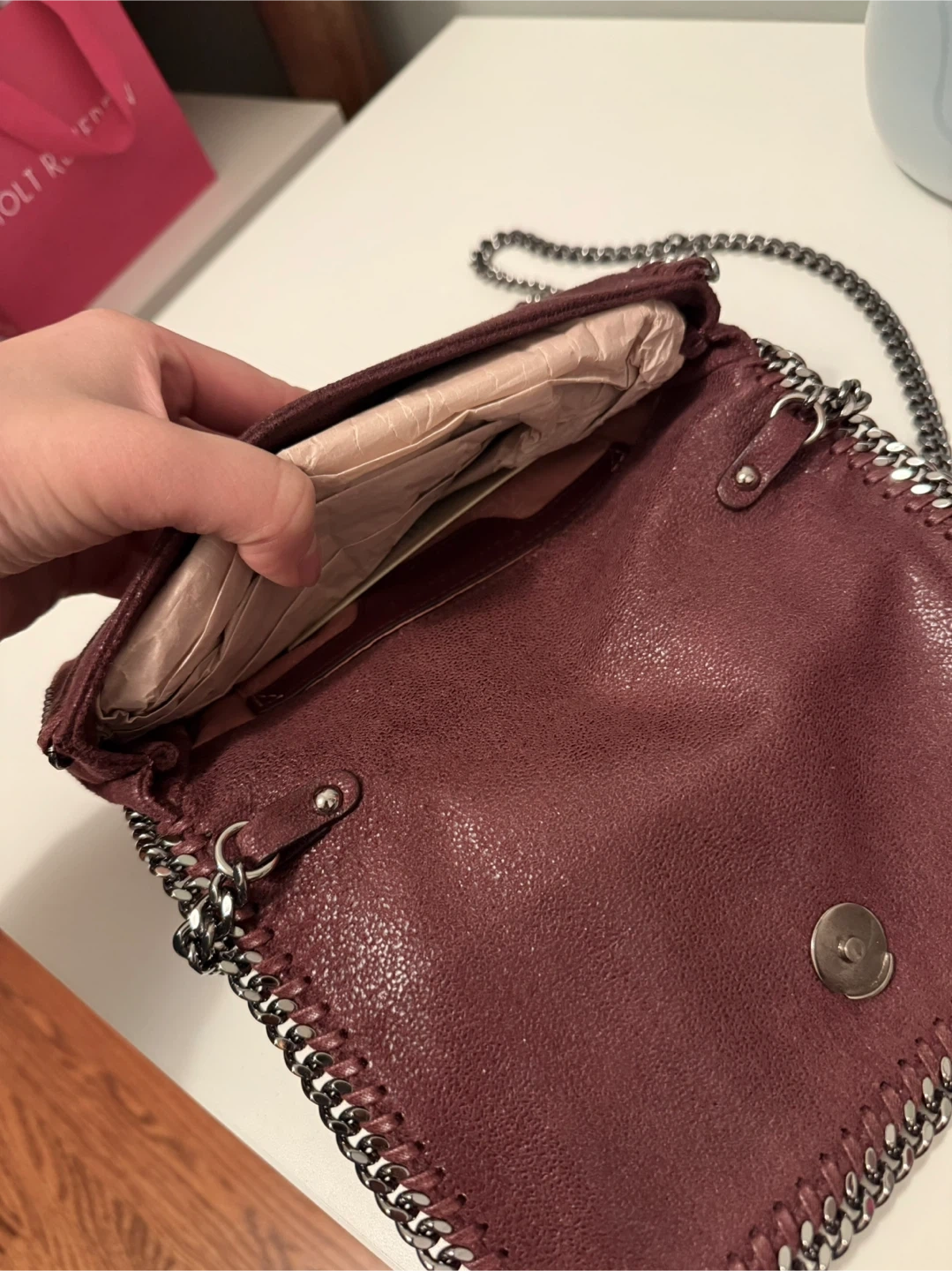 Selling a Stella McCartney Falabella chain bag in a lovely burgundy colour! It's in brand new condition and ready for a new owner. Perfect whether you’re looking for vegan leather or just a new addition to your wardrobe. Retails for $1470+tax