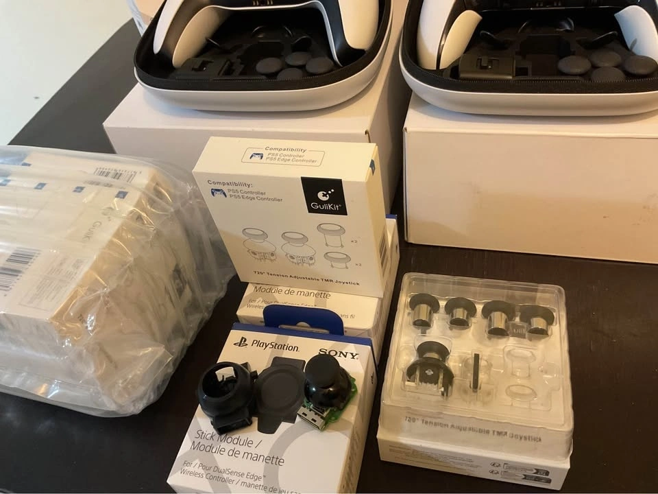 Selling a Gulikit NS55 720° adjustable joystick module, perfect for PS5 DualSense and DualSense Edge controllers. This is a direct replacement that doesn't require any circuit modifications. You can adjust the tension anywhere from 0-720° to match your preferred control feel, and the mechanism is hidden to prevent accidental changes. It comes with three different types of joystick caps for varied grip and feel. The Gulikit NS55 uses contactless TMR sensors, which means no physical wear and tear, preventing common stick drift issues and offering a long lifespan. This upgrade is great for serious gamers looking to fix drift and enhance controller performance. I recommend testing the modules before you buy. I offer $25 off if you trade in a pair of used Edge modules or a used DualSense controller. All sales are final. If there's an issue with the module within 2 months, I may replace it with a new one or fix the module, but this does not cover physical or cosmetic damage. Please ask any questions you have before purchasing.
