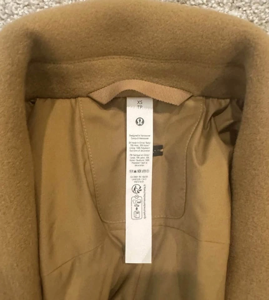 Lululemon Relaxed Fit Wool Overcoat Camel Brown XS