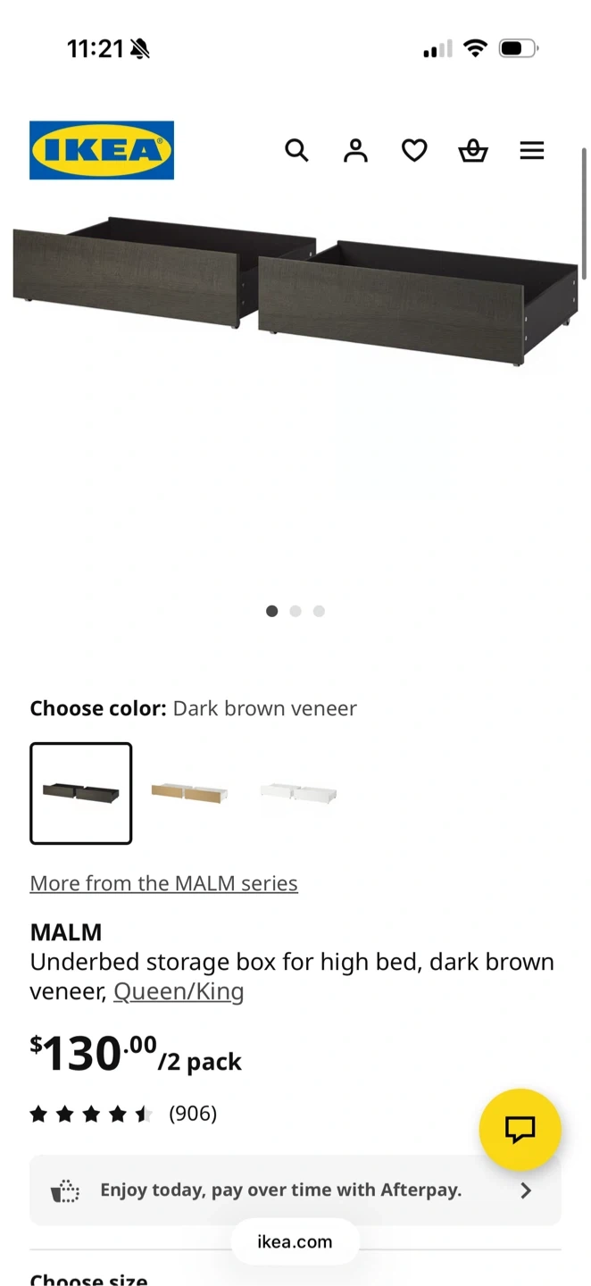 Two IKEA MALM underbed storage boxes in dark brown veneer. These are designed for a high bed, fitting Queen/King sizes. They're great for keeping your bedroom tidy!