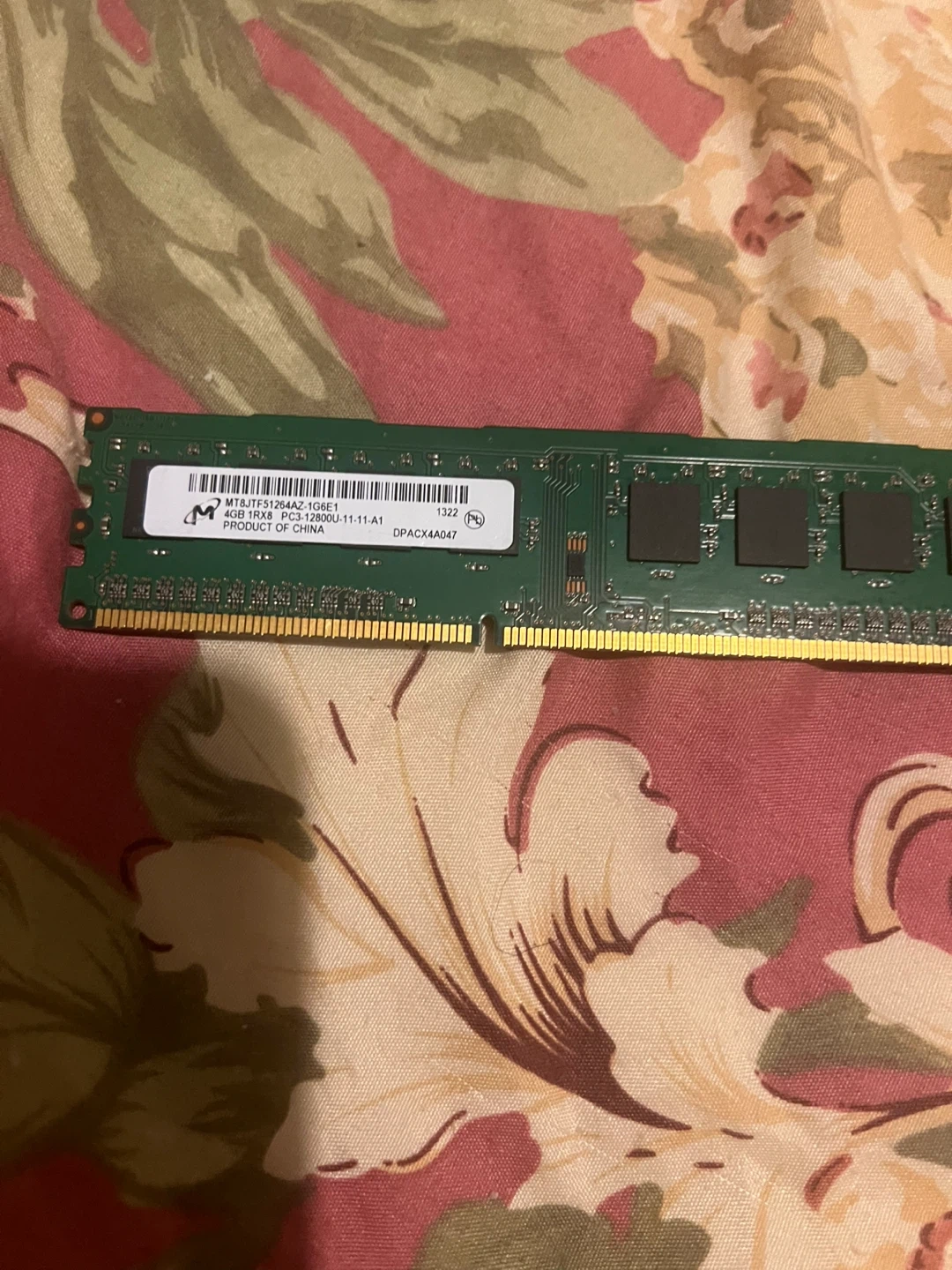 This is a Crucial 4GB PC3-12800U RAM module. It's a single 1RX8 stick with a speed of 11-11-A1. Product of China.