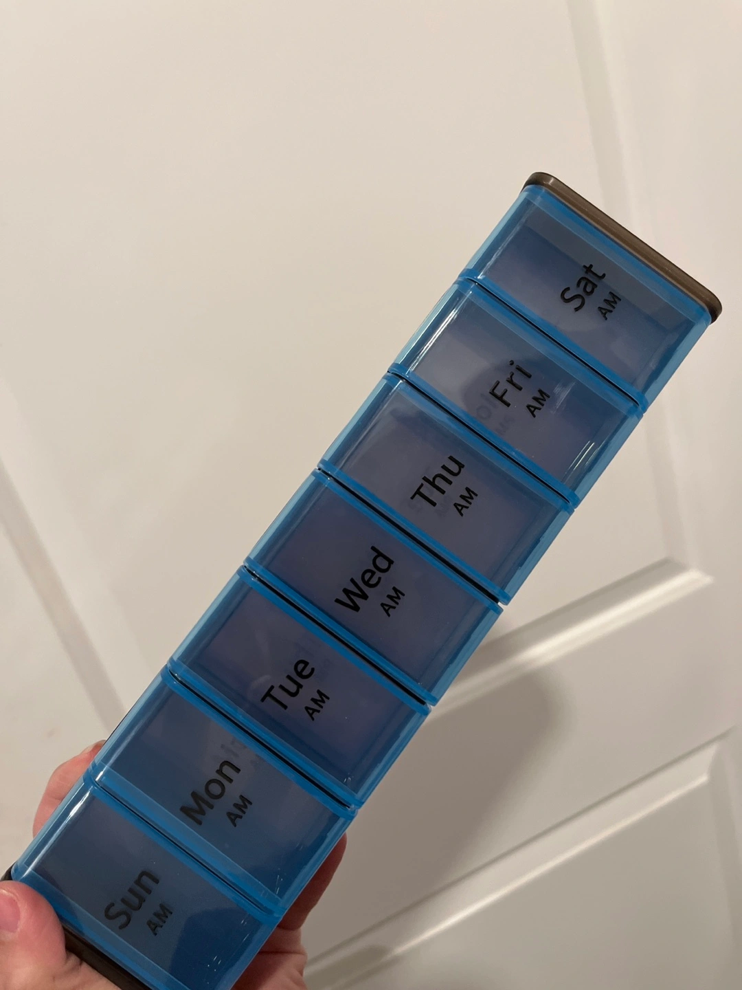 New, unused Bexeen pill organizer. Seven compartments for daily medication. Includes AM and PM sections. Compact and portable design. Perfect for travel or home use.