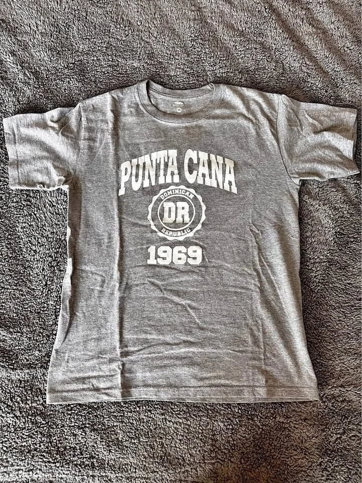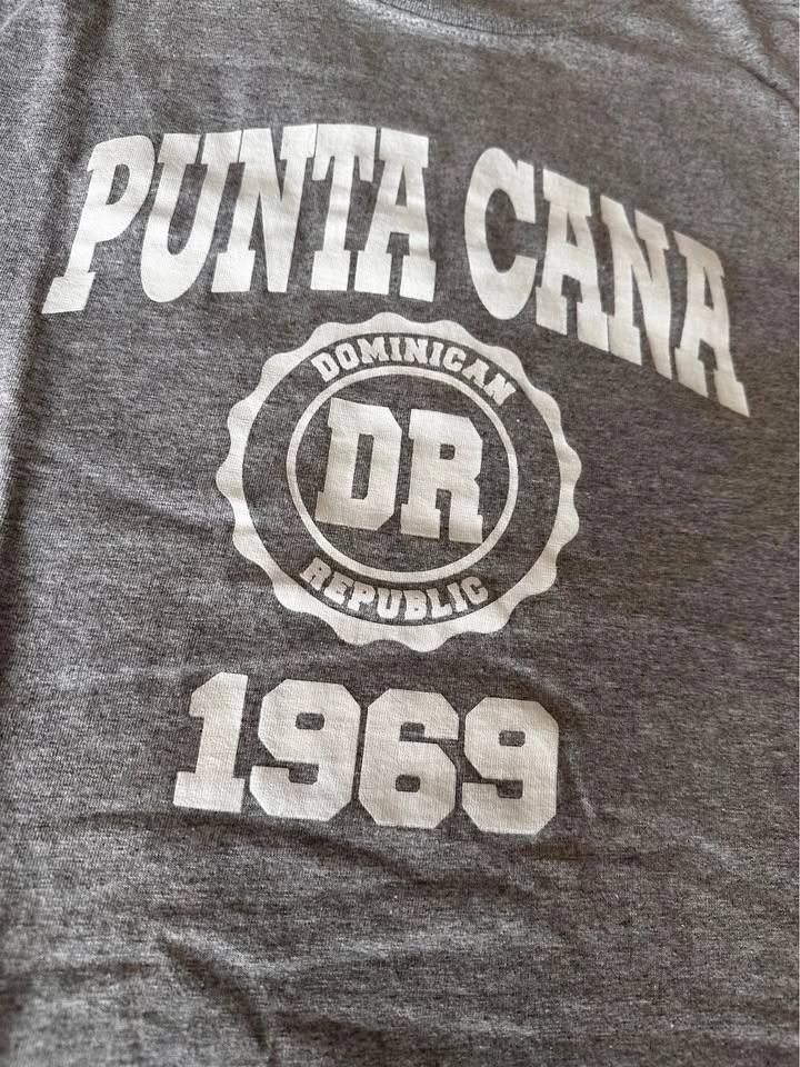 Excellent condition, never worn! Men's Medium (M). Grey t-shirt with a vintage-style white screen-printed graphic. Theme: Punta Cana, Dominican Republic, Caribbean, Travel, Souvenir. #PuntaCana #DominicanRepublic #DR #Caribbean #TravelTee #SouvenirShirt #GraphicTee #GreyShirt #SummerFashion #VacationVibes #CasualWear #NeverWorn #SizeMedium #IslandLife #RepublicaDominicana