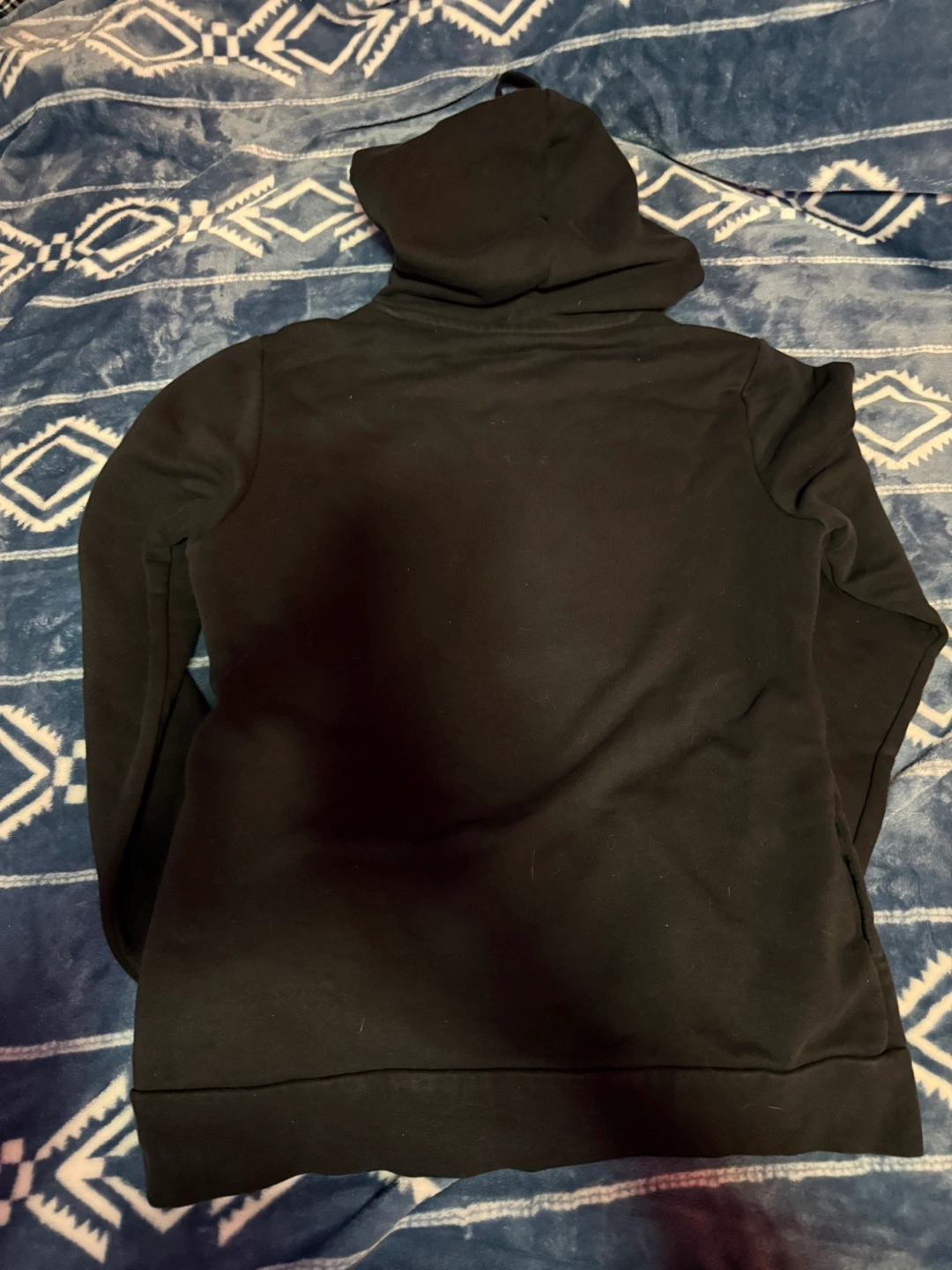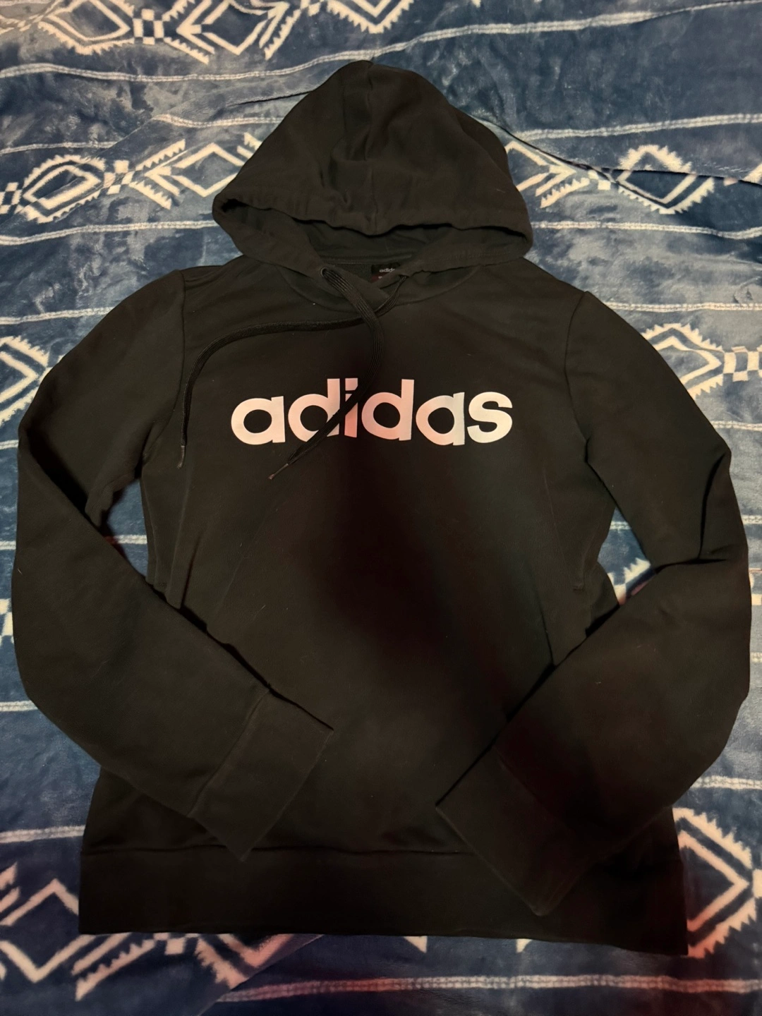 Selling a gently used black Adidas hoodie in size S. It's in great condition and super comfy for everyday wear! Perfect for layering or just lounging around the house