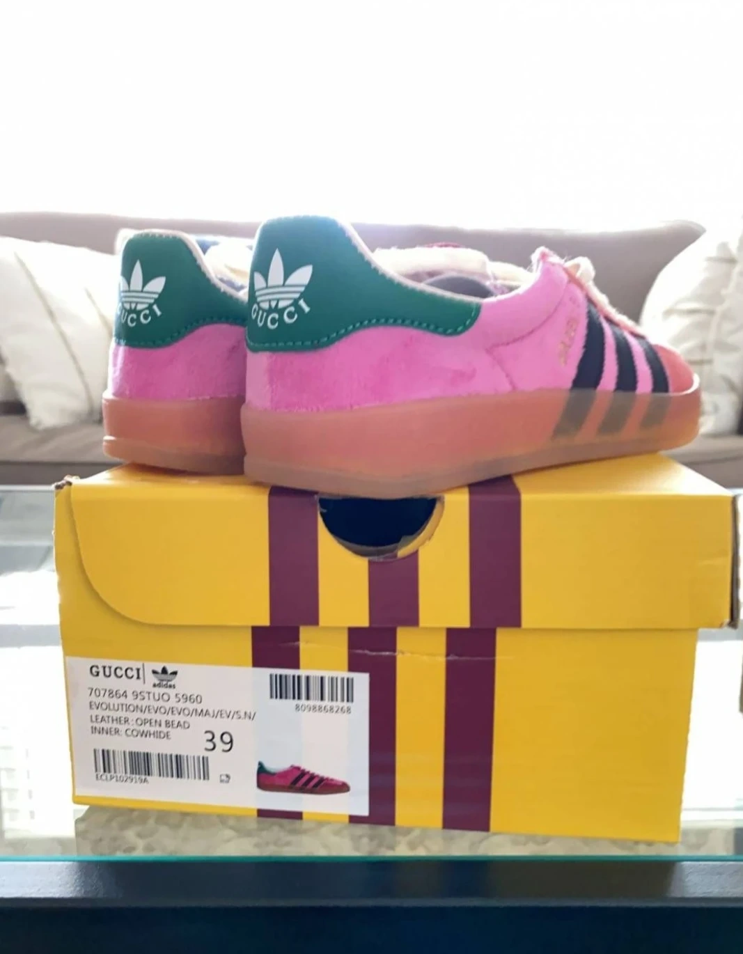 Gucci x Adidas Gazelle Pink Velvet Sneakers Size 39