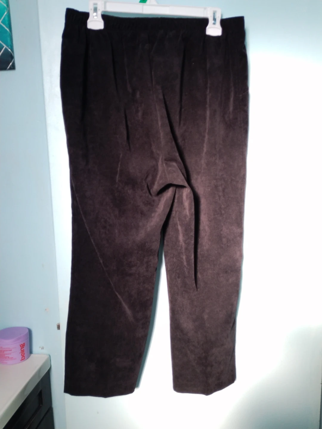 Selling Alia Petite black corduroy pants in size 14P. These pants are made of 85% polyester and 13% nylon with 2% spandex. They feature an elastic waistband for comfort. A great addition to any casual wardrobe!