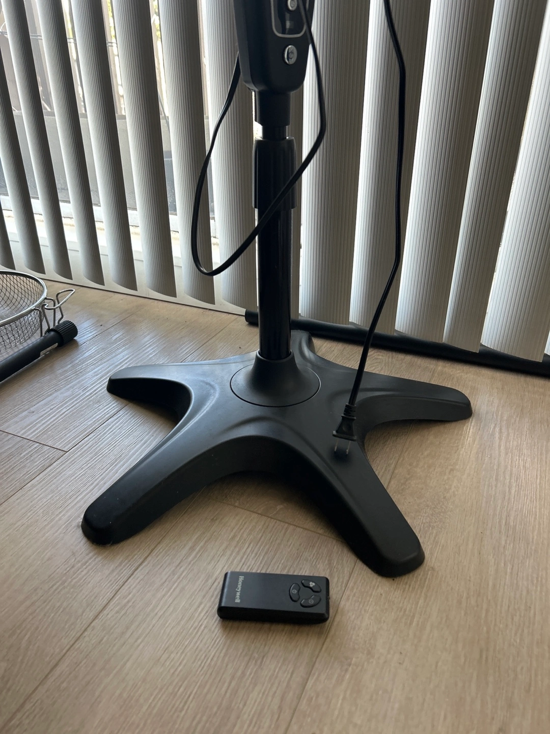 This Honeywell QuietSet stand fan offers multiple speed settings for personalized comfort, including 'Quiet Silence' and 'Sleep' modes. It's a great option for keeping any room cool and comfortable. Includes a remote control for easy operation.