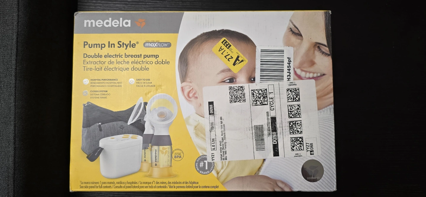 Double electric breast pump. Includes bottles, breast shields, connectors, tubing, and cooler bag. Portable and easy to use. Great for busy moms.